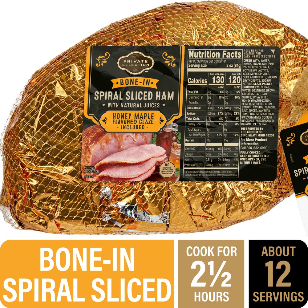 Private Selection Hickory Smoked Honey Spiral Sliced Ham, Holiday centerpiece. Private Selection Spiral Sliced Ham is hickory smoked and glazed with honey for a sweet, savory flavor. Pre-sliced for ea…