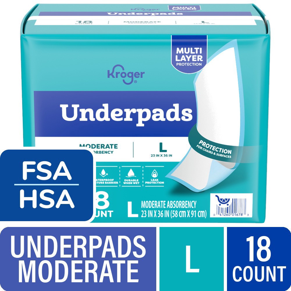 Kroger® Soft Underpads Moderate Absorbency Large ensure ultimate peace of mind. Superbly sized at 23 in x 36 in, they provide moderate absorbency with an outstanding waterproof moisture barrier and mu…