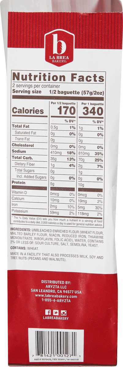 La Brea Bakery Bread French Baguette Demi - 4 Oz