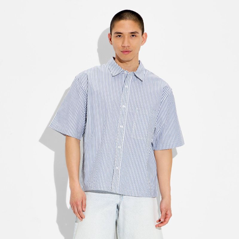 Men's Short Sleeve Collared Button-Down Shirt - Original Use™ Blue Striped XXL