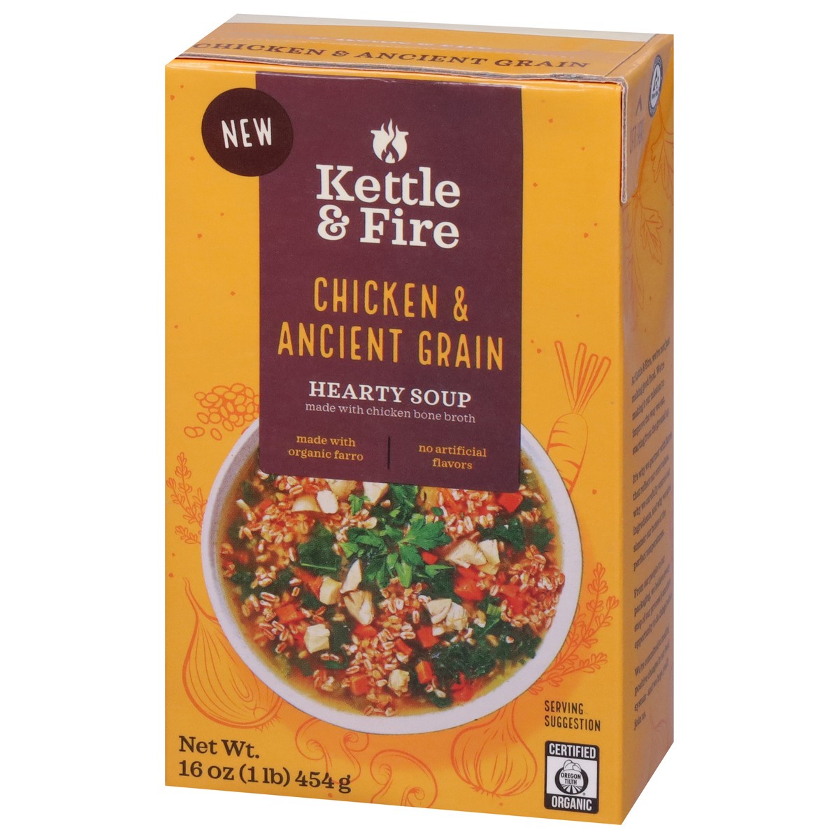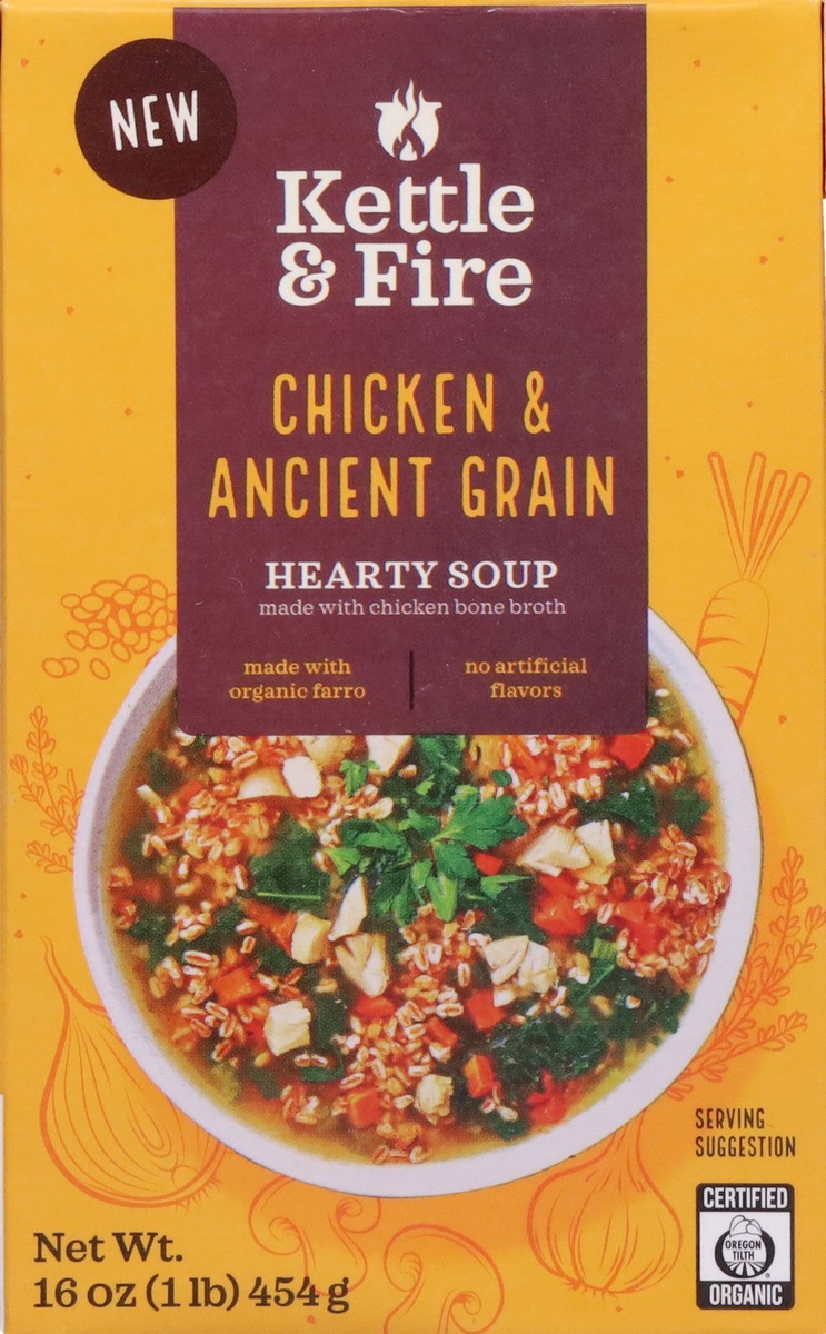 Our Chicken & Ancient Grain Hearty Soup is herbal, hearty, and tastes-like homemade. Real bites of chicken, slow-cooked ancient grains, and a savory medley of vegetables meet in a rich, comforting bro…