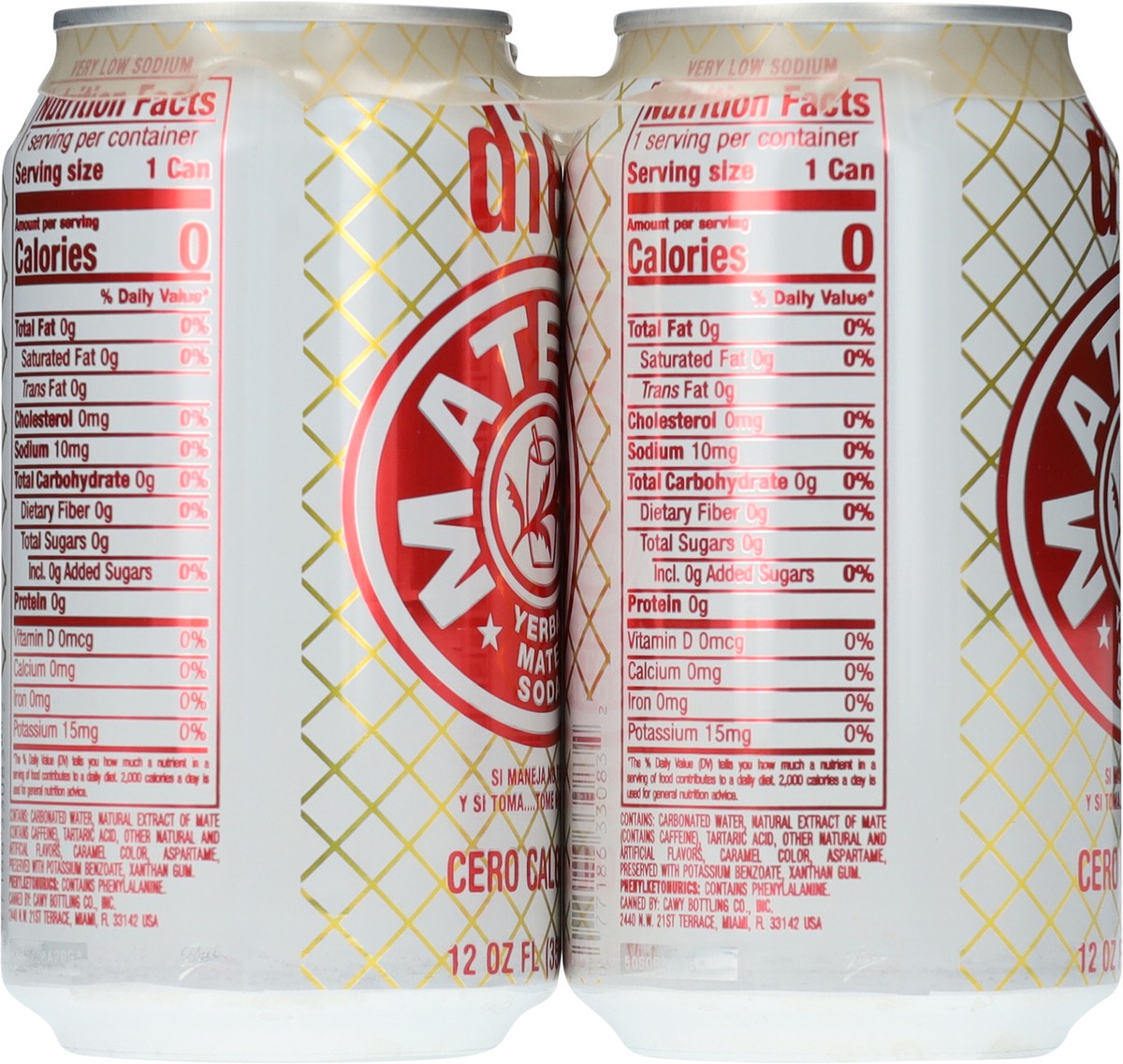Materva Sugar Free Diet Yerba Mate Soda - 6 x 12 fl oz Cans