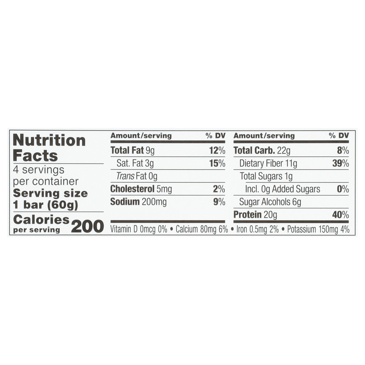 - 5g net carbs and 1g of sugar per bar.