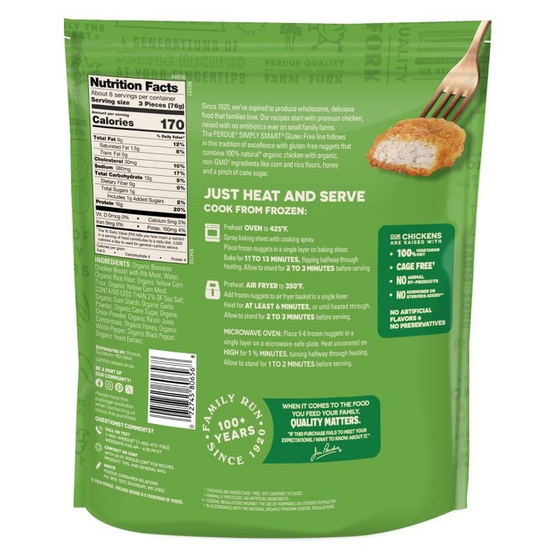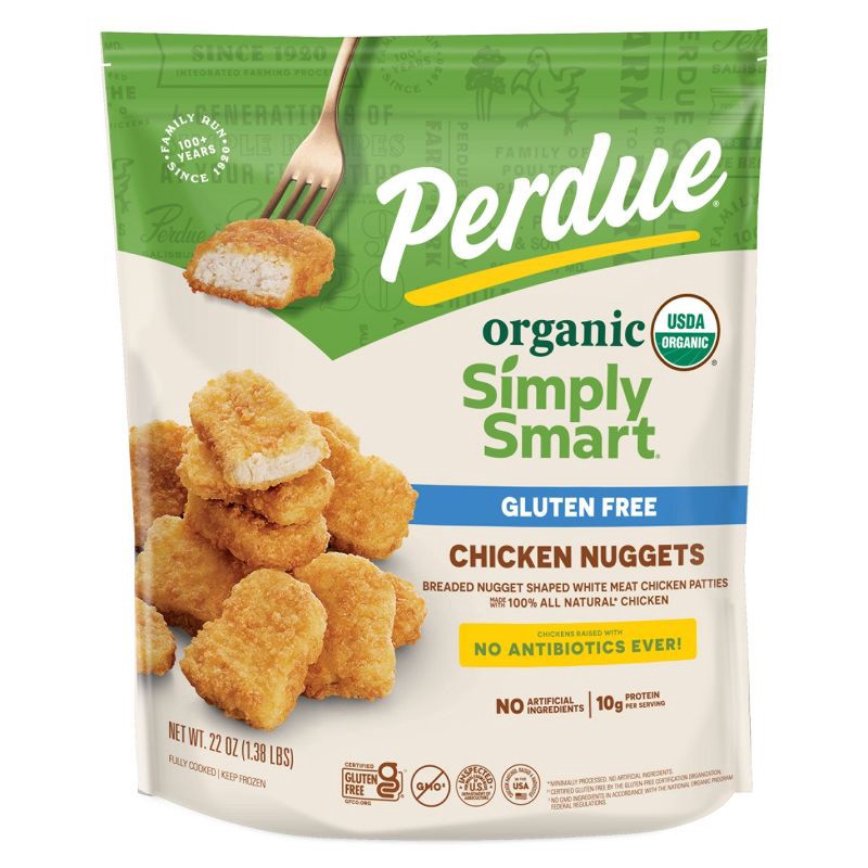 Keep it simple, smart and satisfying - PERDUE® SIMPLY SMART® Organics Gluten-Free Chicken Breast Nuggets are frozen and fully cooked for your convenience. Made with only organic, non-GMO ingredients y…
