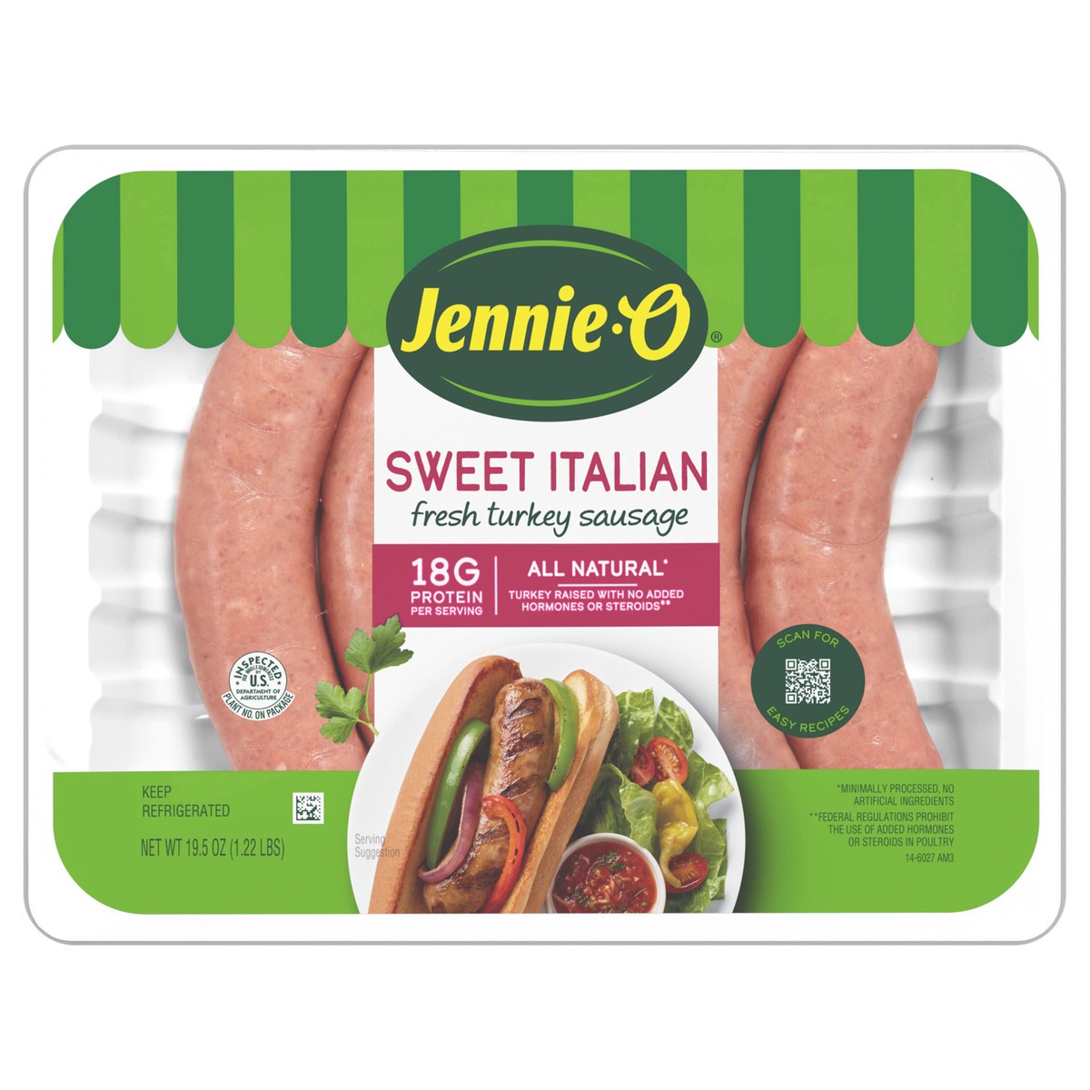 - Includes one 19.5 oz plastic tray of JENNIE-O Sweet Italian Fresh Turkey Sausage; Safe handling: Keep refrigerated