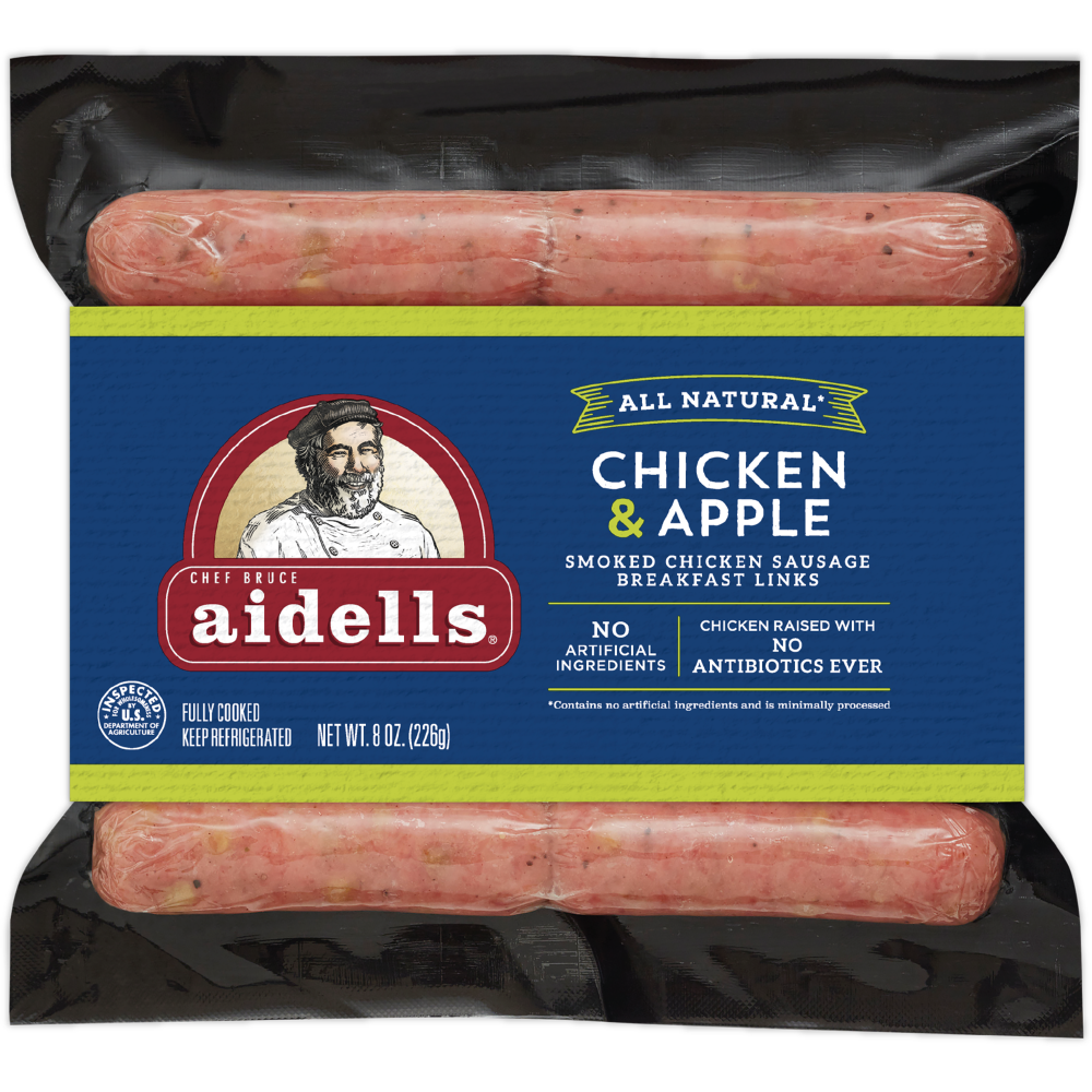 Start your morning off right with Aidells Chicken & Apple Smoked Chicken Sausage Breakfast Links. Washington State Farm apples combine with all-natural* hardwood smoked chicken for the perfect balance…