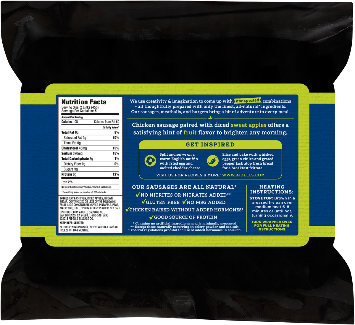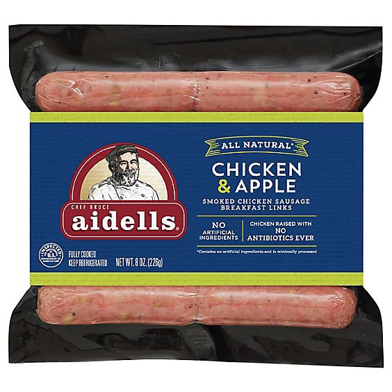 Start your morning off right with Aidells Chicken & Apple Smoked Chicken Sausage Breakfast Links. Washington State Farm apples combine with all-natural* hardwood smoked chicken for the perfect balanceā¦