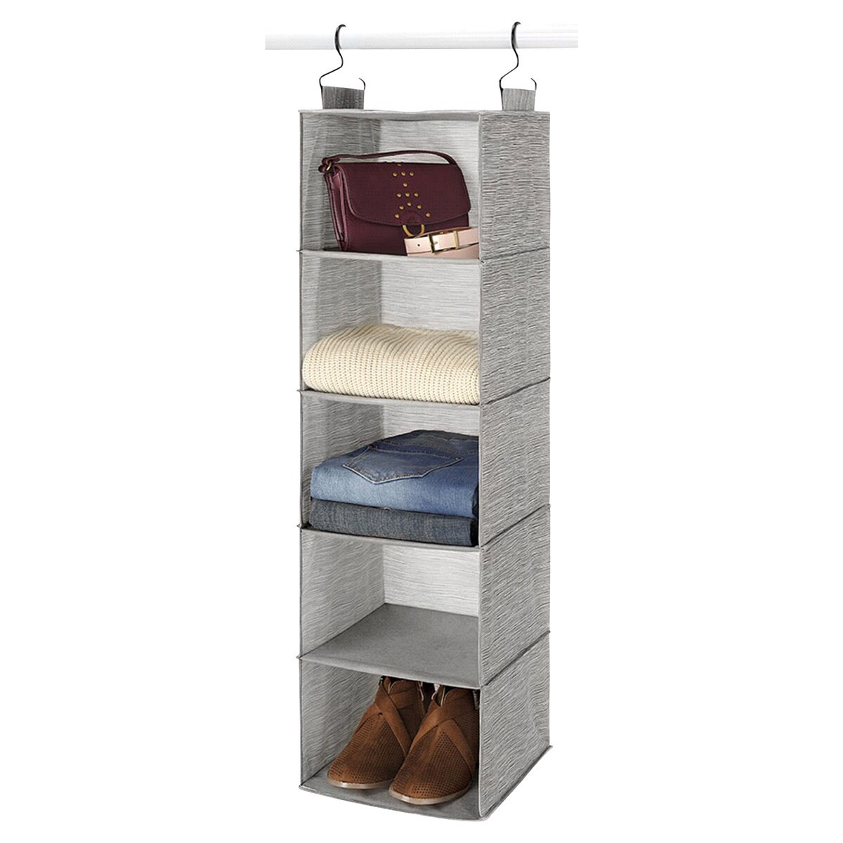 Bringing organization home. Neatly stores and organizes folded garments, shoes and accessories. Maximizes vertical space; eliminates cramped and cluttered closets. 5 open shelves for easy accessibilit…