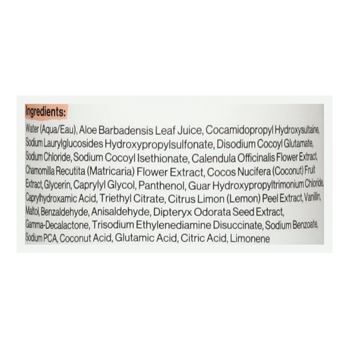 Water Aqua/Eau), Aloe Barbadensis Leaf Juice, Cocamidopropyl Hydroxysultaine, Sodium Laurylglucosides Hydroxypropylsulfonate, Disodium Cocoyl Glutamate, Sodium Chloride, Sodium Cocoyl Isethionate, Cal…