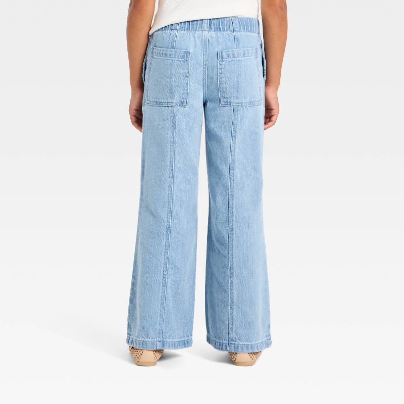 Girls' Mid-Rise Pull-On Wide-Leg Jeans - Cat & Jack™ Light Wash 8