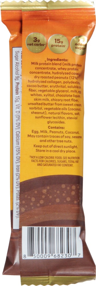 Protein Blend (Hydrolyzed Collagen, Calcium Caseinate, Whey Protein Isolate, Micellar Casein Isolate, Whey Protein Concentrate), Roasted Peanuts, Vegetable Glycerin, Cocoa Butter, Soluble Corn Fiber, …