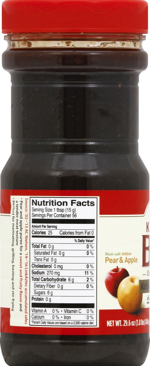 Made with Korean pear & apple. Korea's no. 1 brand. Korea's top selling BBQ marinade brand during 2002-2015. Pear and apple puree for sweet and fruity flavor and a tender meat texture. Perfect for mar…