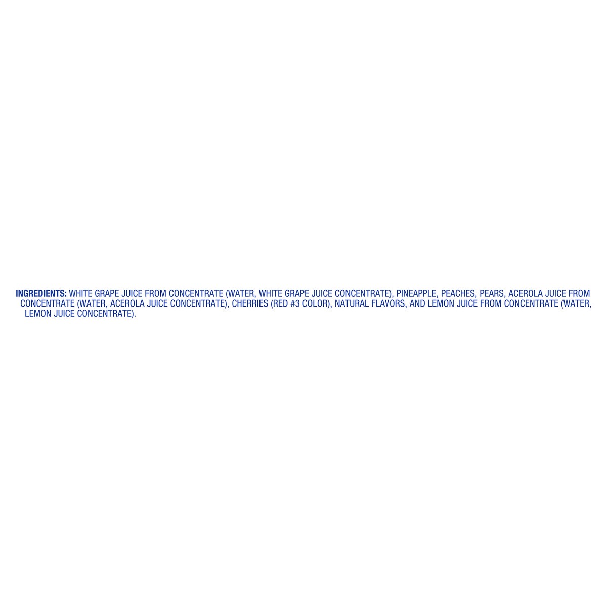 White Grape Juice from Concentrate (Water, White Grape Juice Concentrate), Pineapple, Peaches, Pears, Acerola Juice from Concentrate (Water, Acerola Juice Concentrate), Cherries (Red 3 Color), Natural…