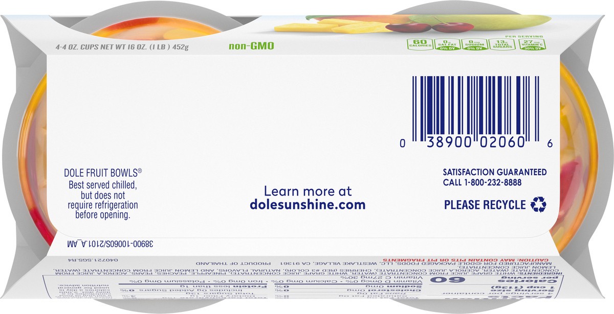 Dole Cherry Mixed Fruit In 100% Fruit Juice Cups - 4-4 Oz