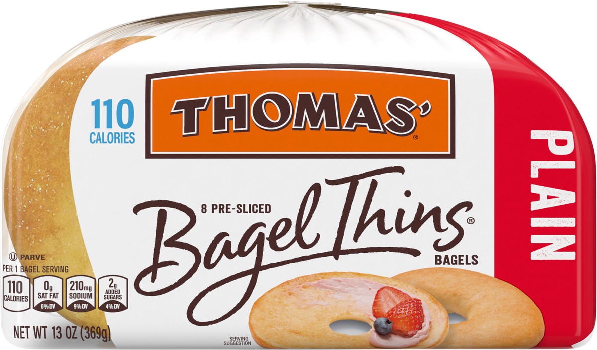 Elevate your morning ritual with Thomas' Bagel Thins Plain Bagel Thins, 8 count, 13 oz, an option for those wanting to redefine breakfast with a healthier alternative! With only 110 calories per slice…