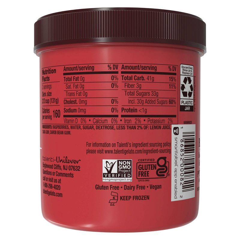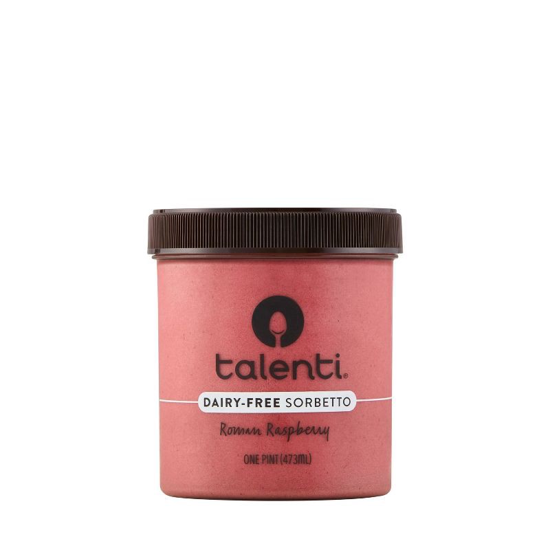 - Talenti Roman Raspberry Sorbetto is vegan, gluten free and does not use high fructose corn syrup