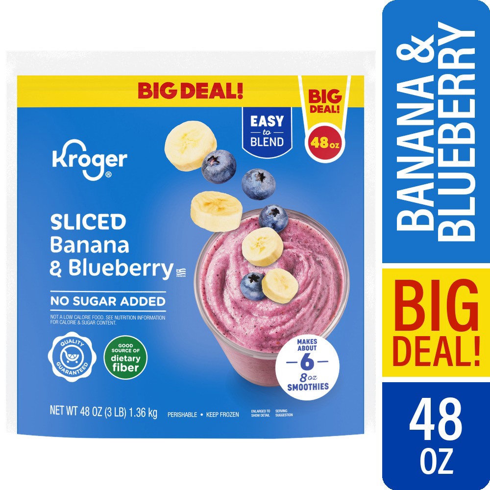 Kroger® No Sugar Added Sliced Banana and Blueberry Smoothie BIG DEAL! comes with no sugar addedˆ and is a good source of dietary fiber. It's great for creating mouthwatering smoothies because it's so …