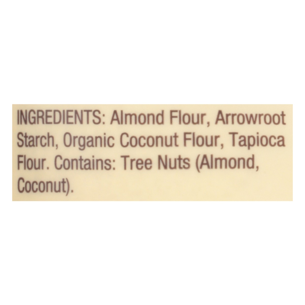 Almond Flour, Arrowroot Starch, Organic Coconut Flour, Tapioca Flour.