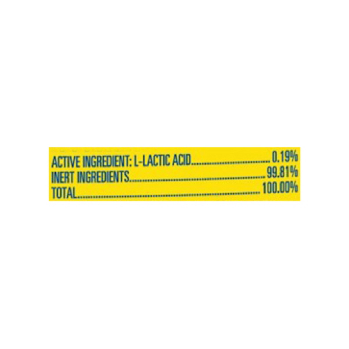 Active Ingredient: L-LACTIC ACID 0.19% Inert Ingredients 99.81% TOTAL 100.00%.