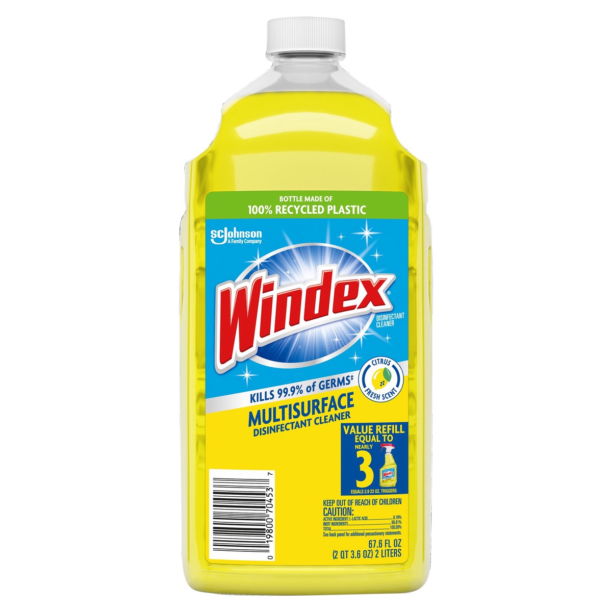 Windex Disinfectant Cleaner, Multi-Surface Refill, Fresh Citrus Scent, 67.6 fl oz