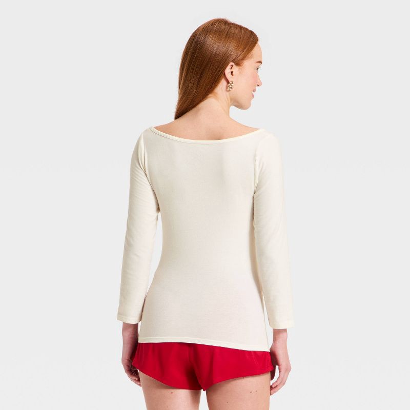 Women's Slim Fit Long Sleeve Valentine's Day Graphic Boat Neck T-Shirt - Universal Thread™ Cream S