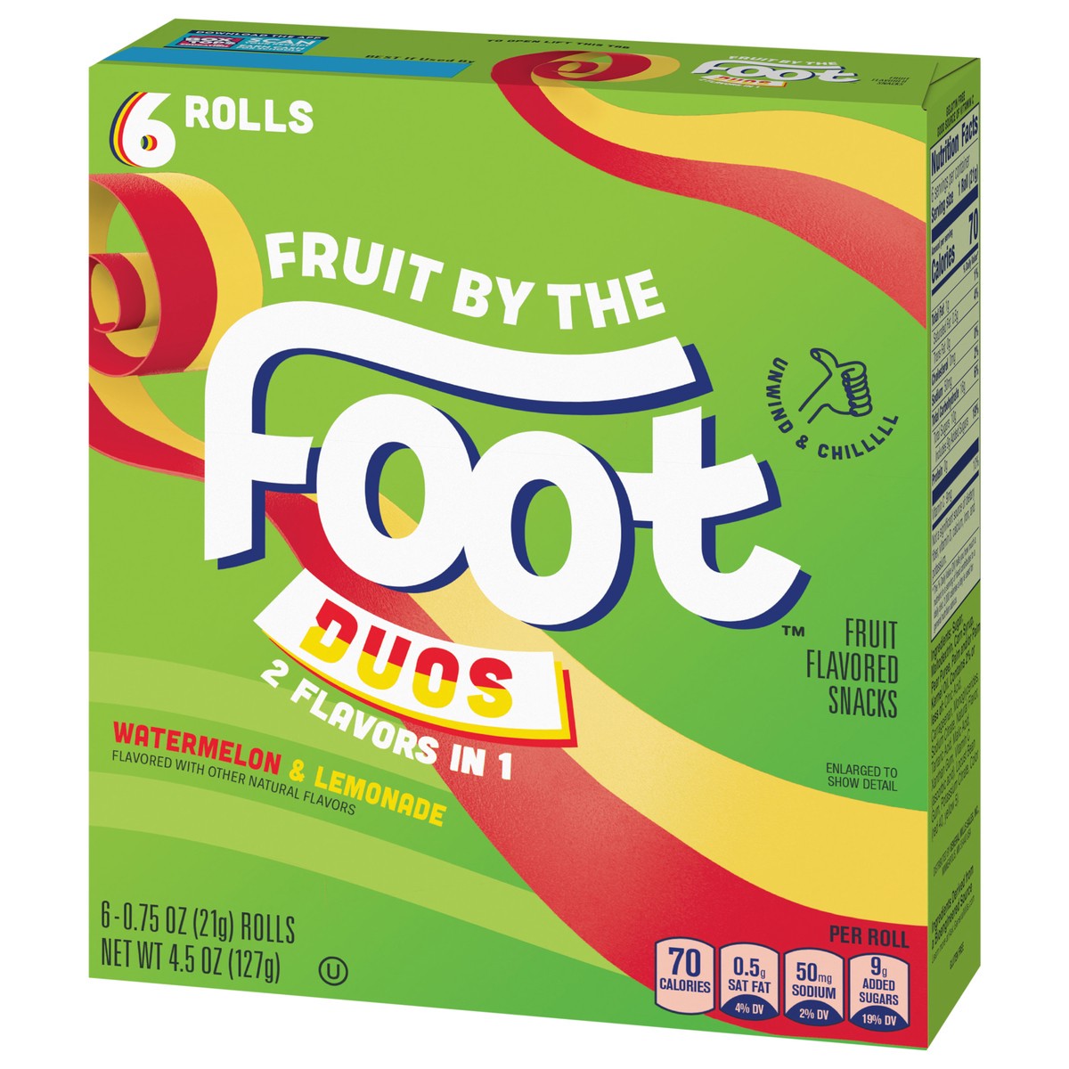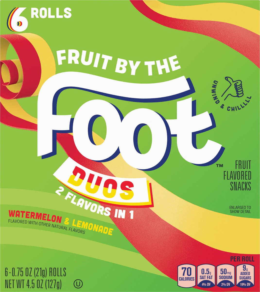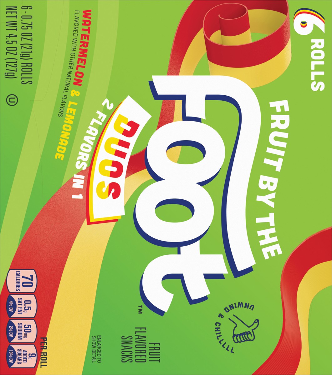 Fruit By The Foot Splitz Fruit Flavored Snacks, Watermelon and Lemonade, 6 Rolls, 4.5 oz