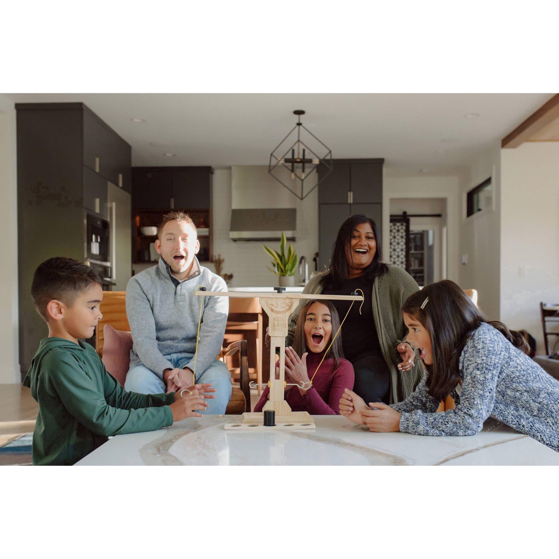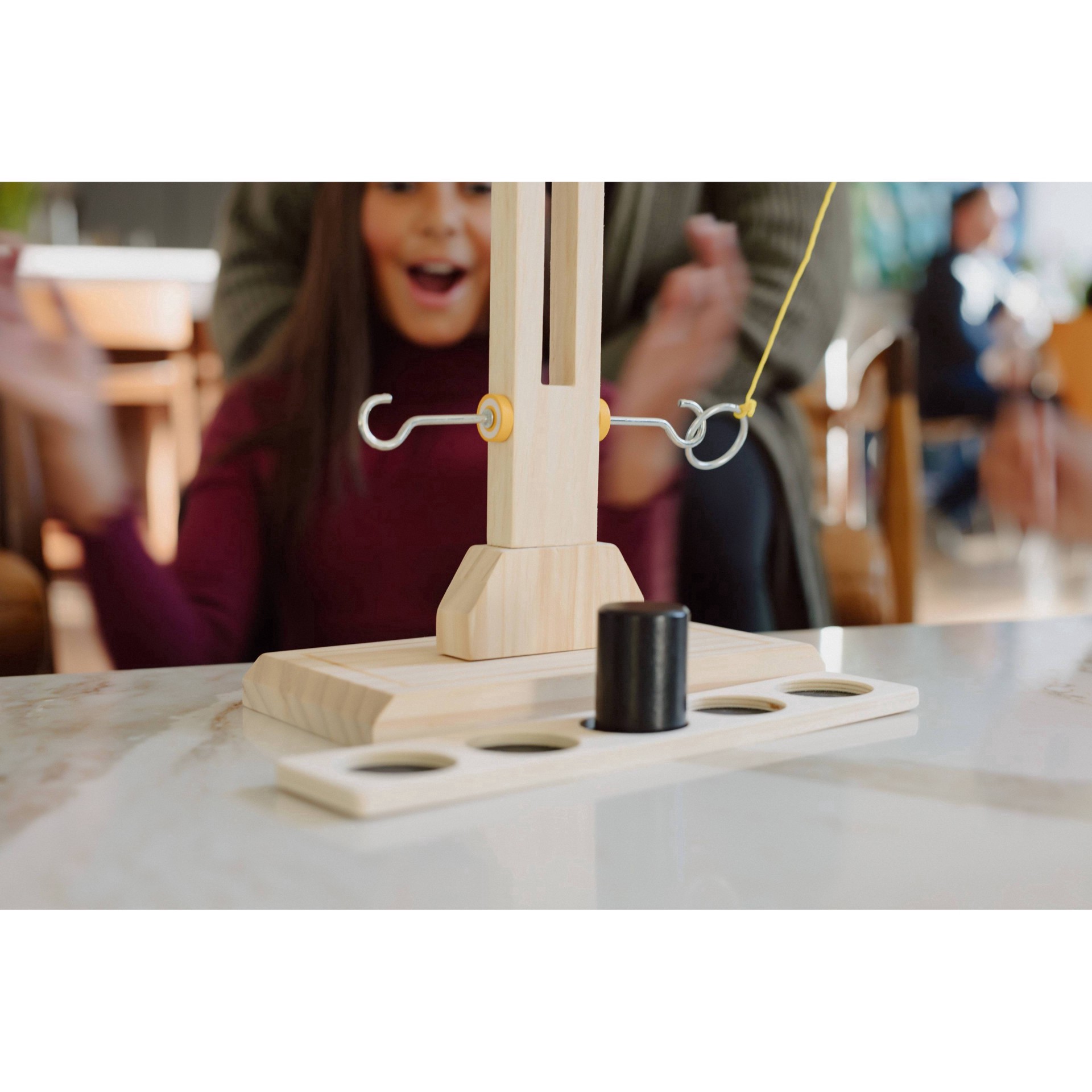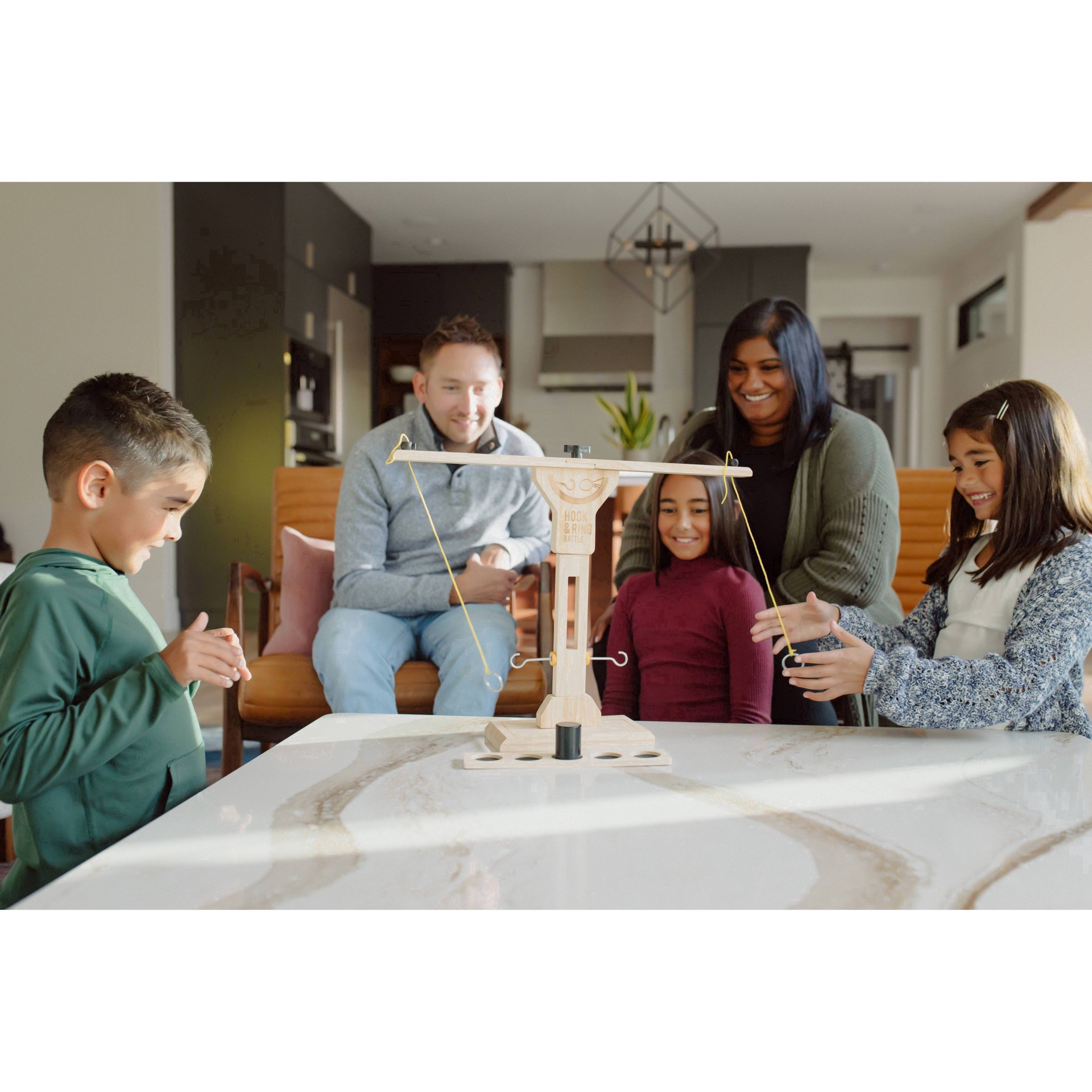 Go head -to-head against family & friends to land your ring on the hook as many times as possible, as quickly as you can! When you hook your ring, you are one step closer to the win - but move quickly…
