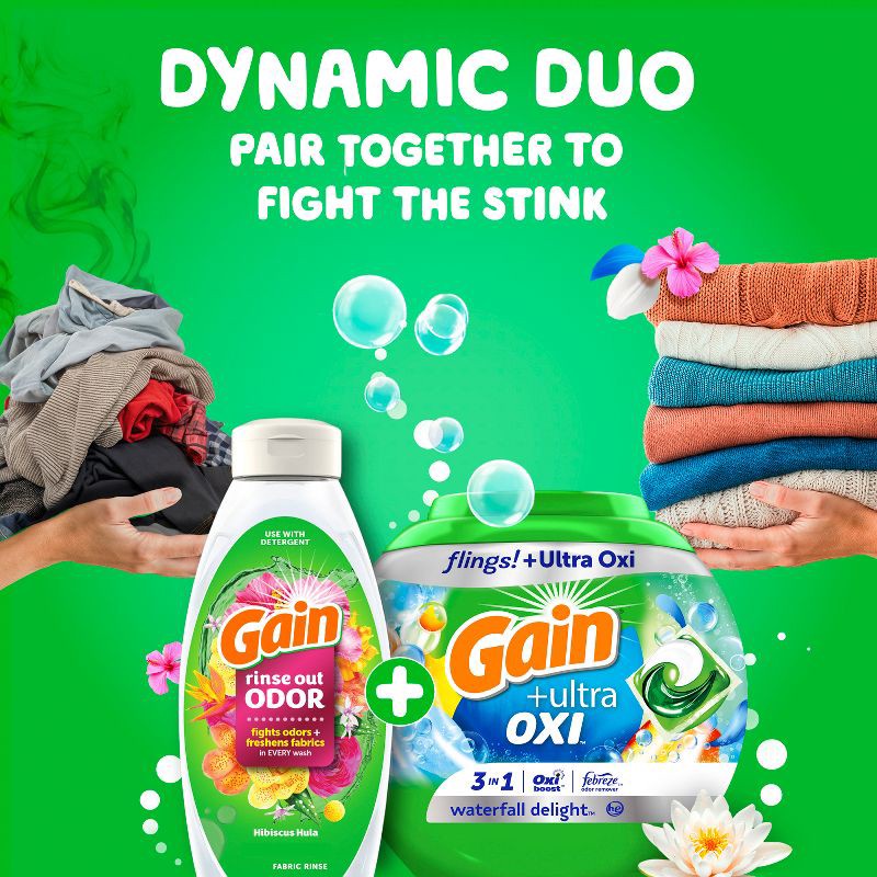 - POWERFUL CLEANING DETERGENT PACS: Gain Flings laundry pacs combine OxiBoost and Febreze for laundry detergent that cleans deep