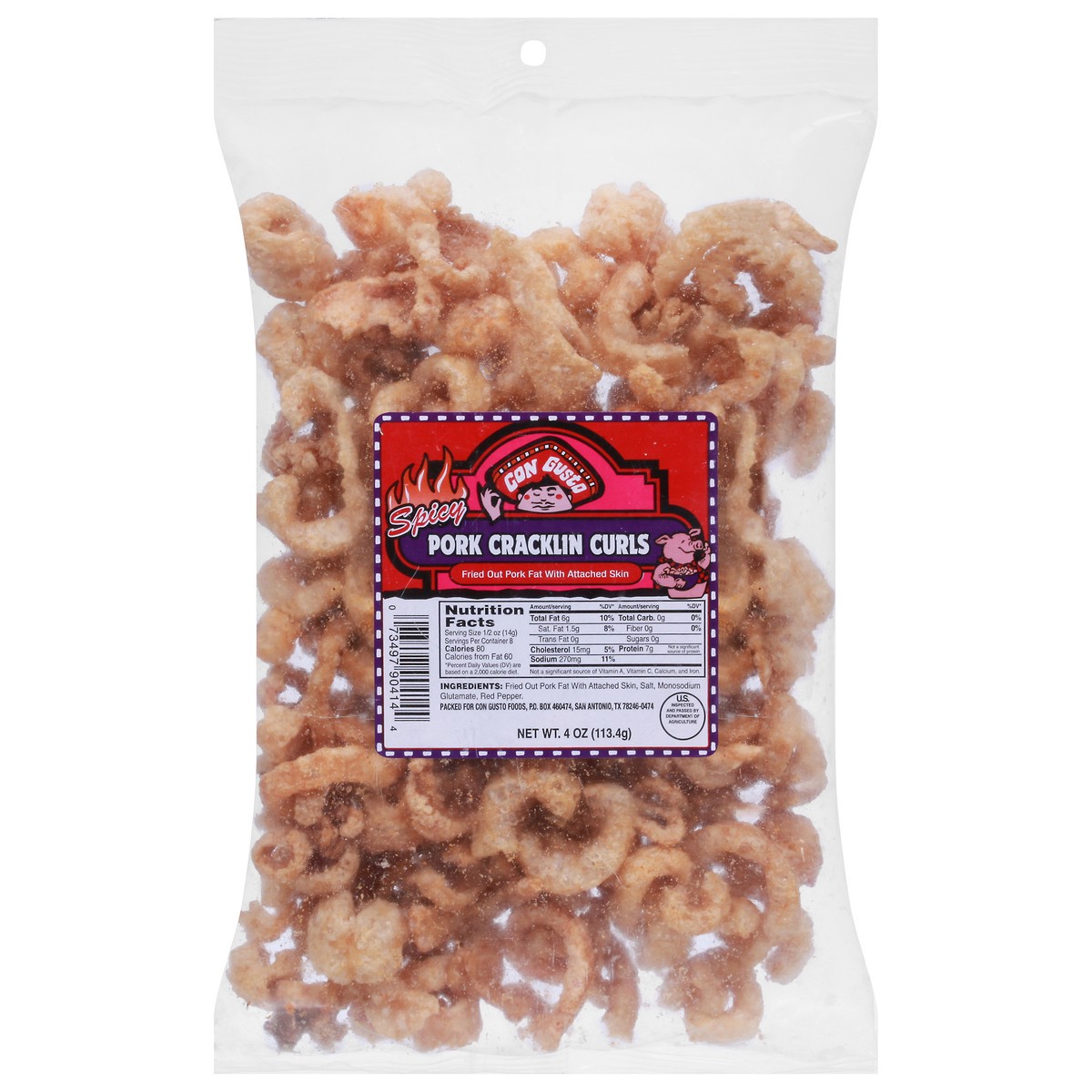 Con Gusto Spicy Pork Cracklin Curls 4 oz