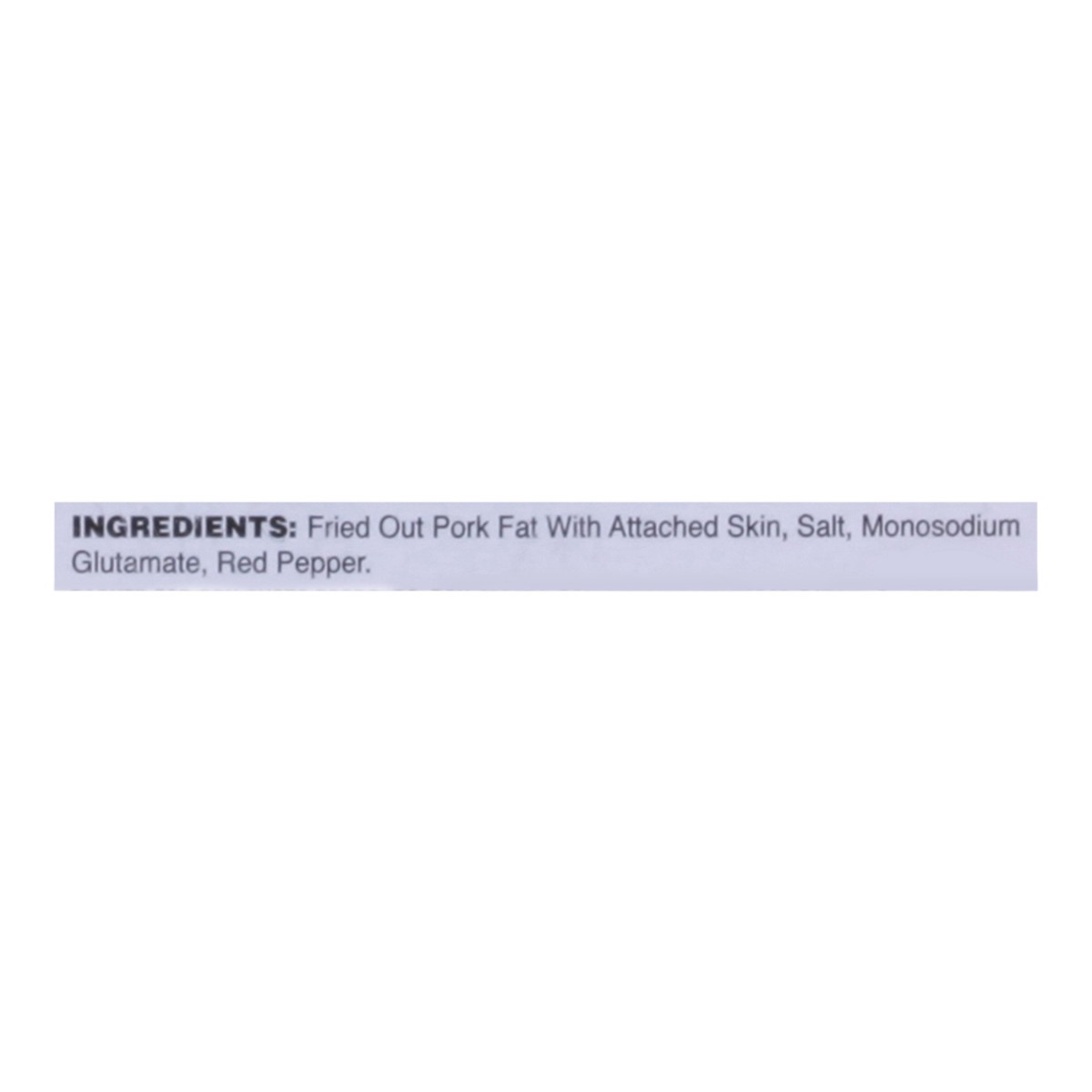 Fried Out Pork Fat with Attached Skin, Salt, Monosodium Glutamate, Red Pepper.