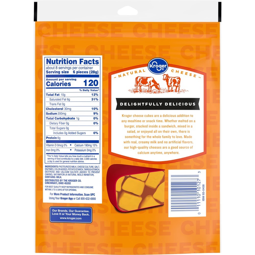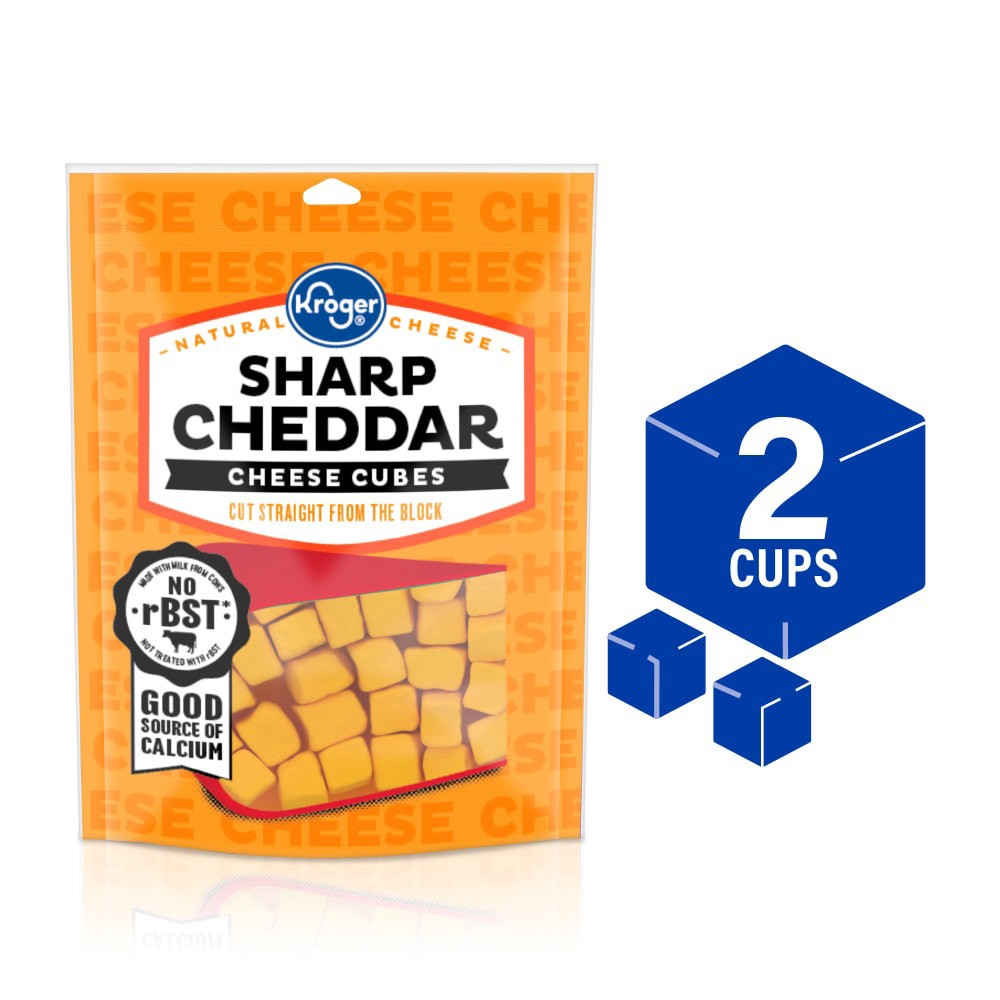 Kroger® Sharp Cheddar Cubed Cheese makes snack time or mealtime more scrumptious. Rich in flavor and a good source of calcium, this cheese is rich and delicious made from pasteurized milk, cheese cult…