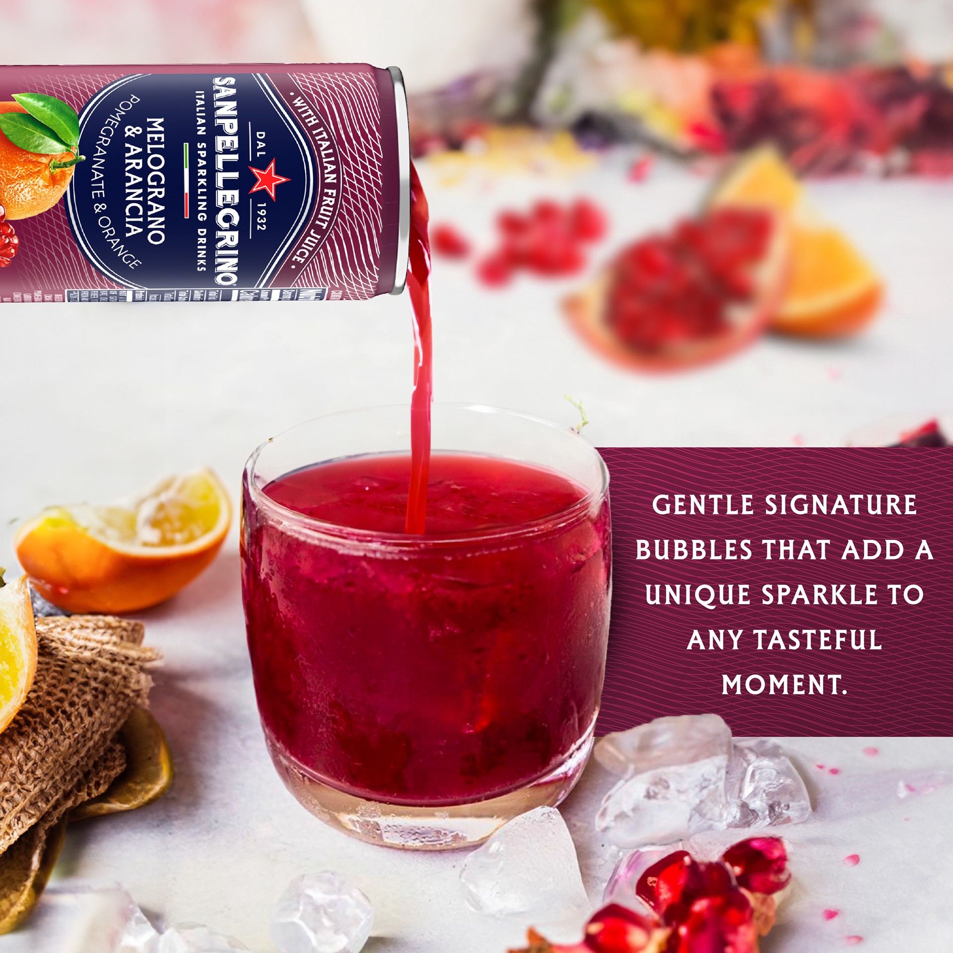 Enjoy every sparkling moment with a Sanpellegrino Melograno and Arancia Sparkling Drink. Sanpellegrino Melograno and Arancia is an orange and pomegranate flavored sparkling beverage made with real ora…