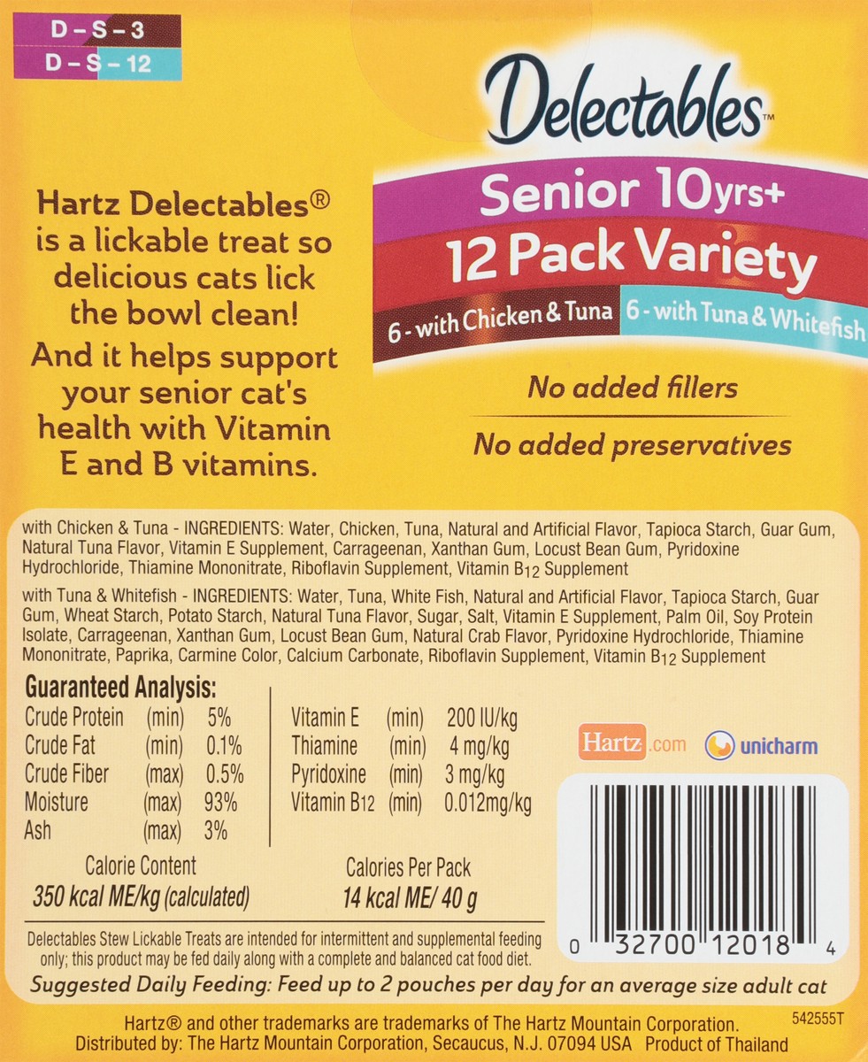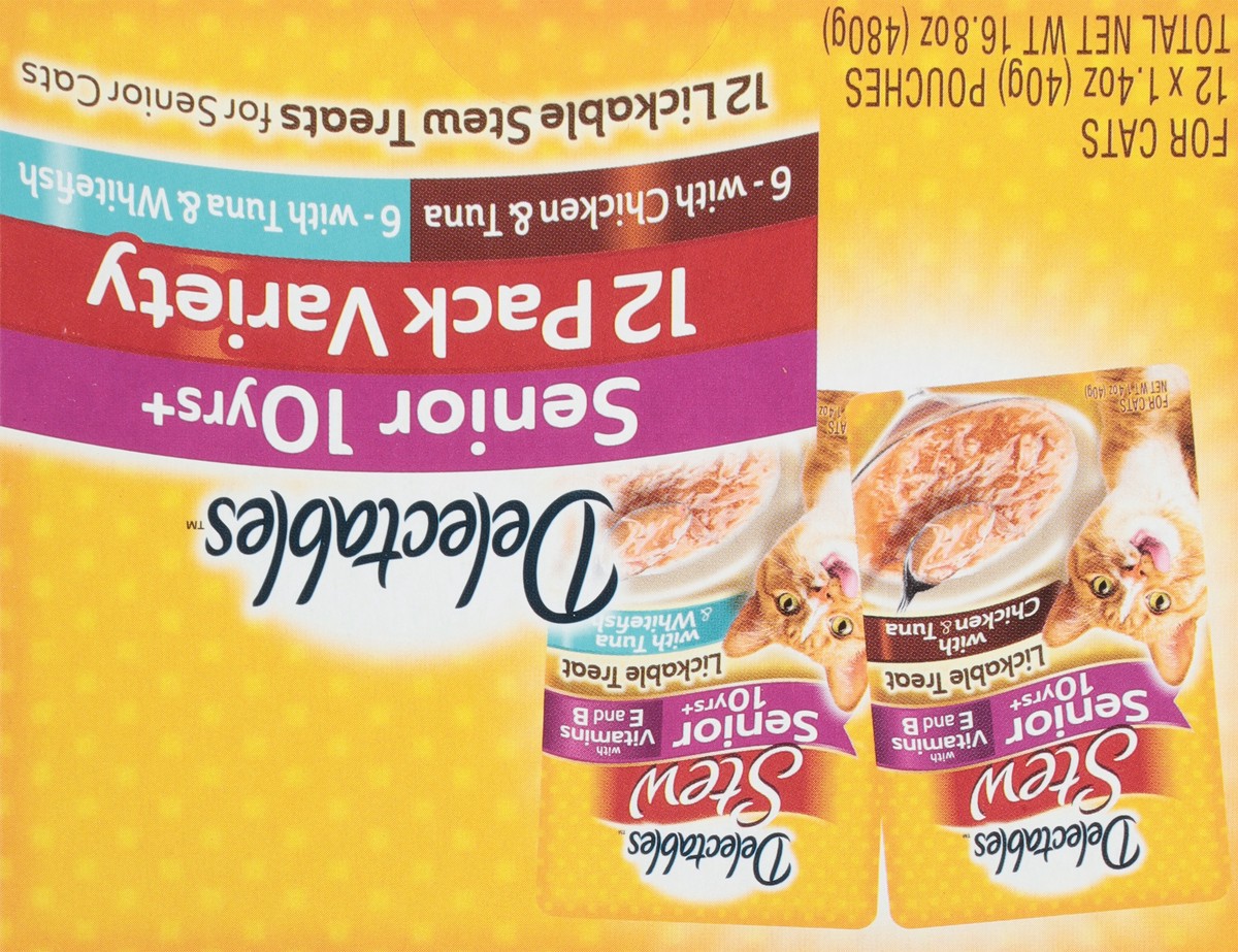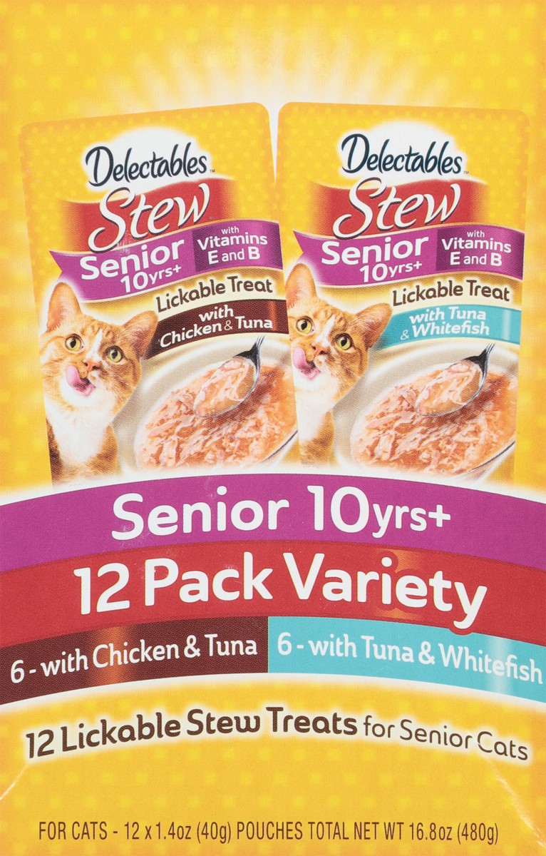 Delectables Stew Senior 10+Yrs with Chicken & Tuna/with Tuna & Whitefish Lickable Treat Variety Pack 12 - 1.4 oz Pouches