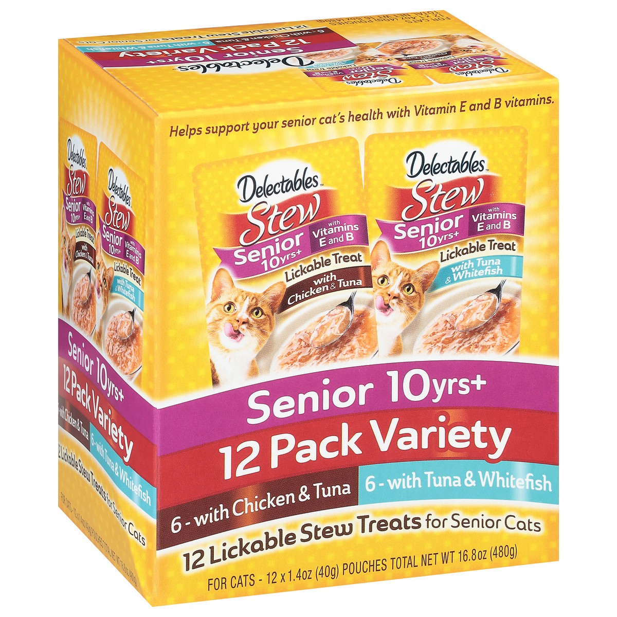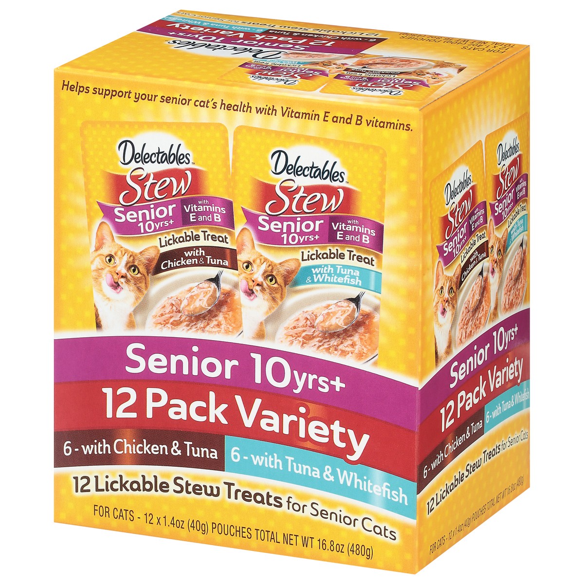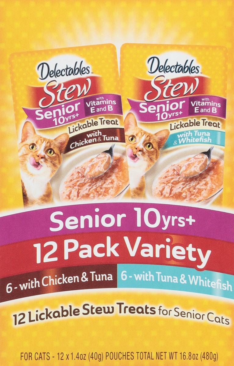 Delectables Stew Senior 10+Yrs with Chicken & Tuna/with Tuna & Whitefish Lickable Treat Variety Pack 12 - 1.4 oz Pouches