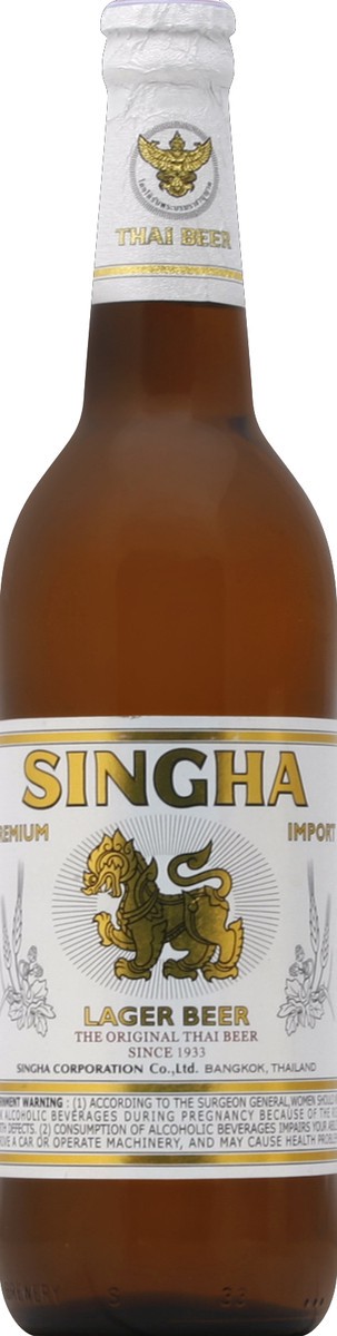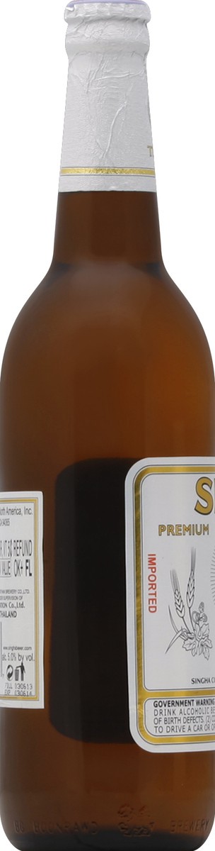 Premium Import. The original Thai beer. Since 1933. Imported. www.singhabeer.com. Alc. 5.0% by vol. Imported by Singha North America, Inc. Redwood, City, CA 94065. Brewed and bottled by Pathumthani Br…