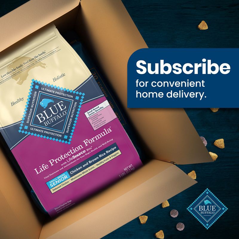 - Contains: One (1) 5-lb trial-size bag of BLUE Life Protection Formula Small Breed Senior Dry Dog Food, Chicken and Brown Rice Recipe