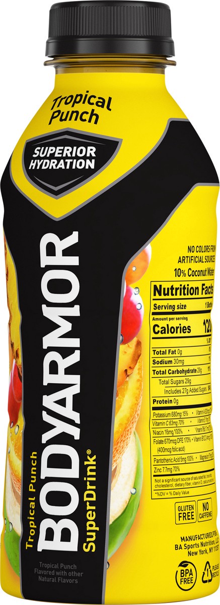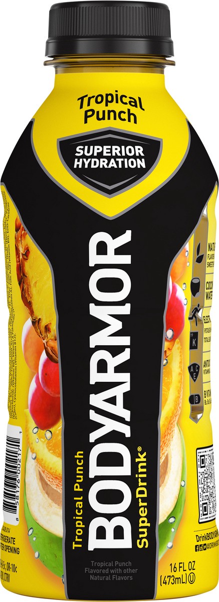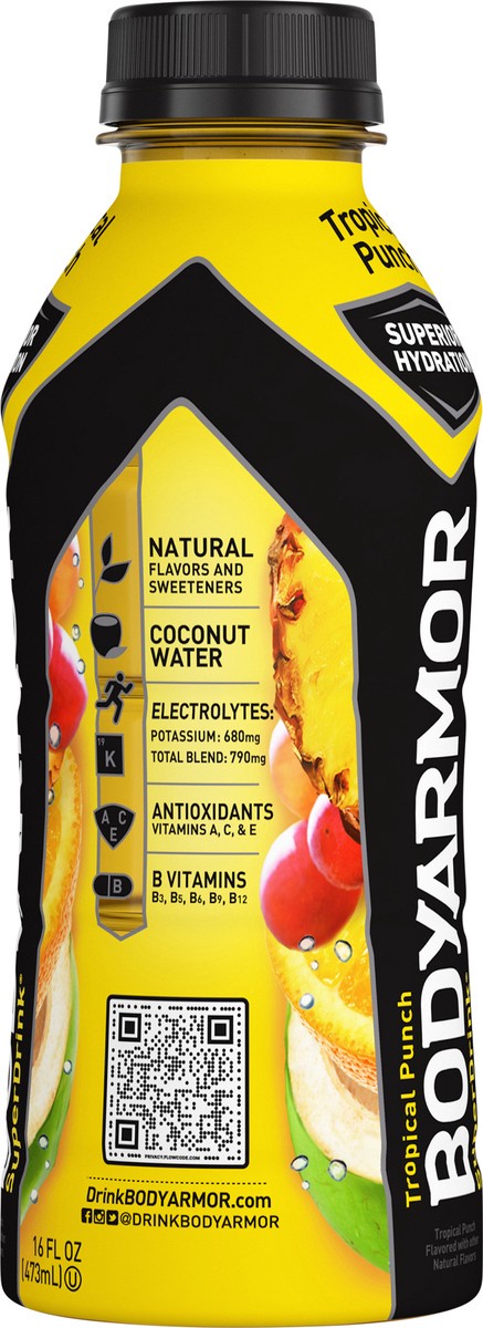 BODYARMOR Sports Drink Tropical Punch isn't just any electrolyte drink; it's made with potassium-packed electrolytes and antioxidants. It's the real hydration you need to face any challenge. No artifi…