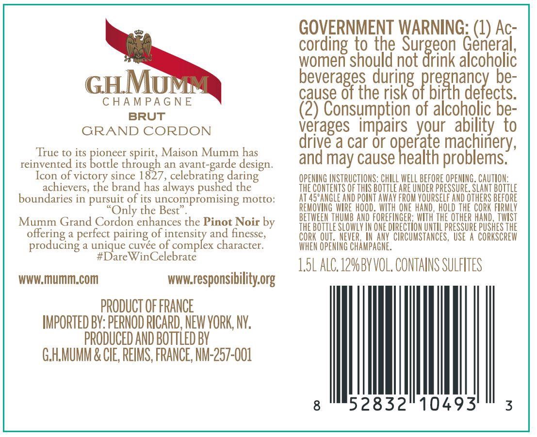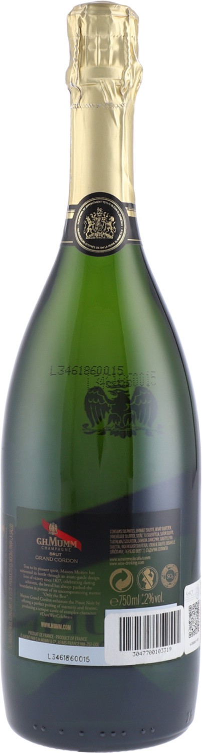 G.H. Mumm Grand Cordon Champagne, 750 mL Bottle, 12% ABV