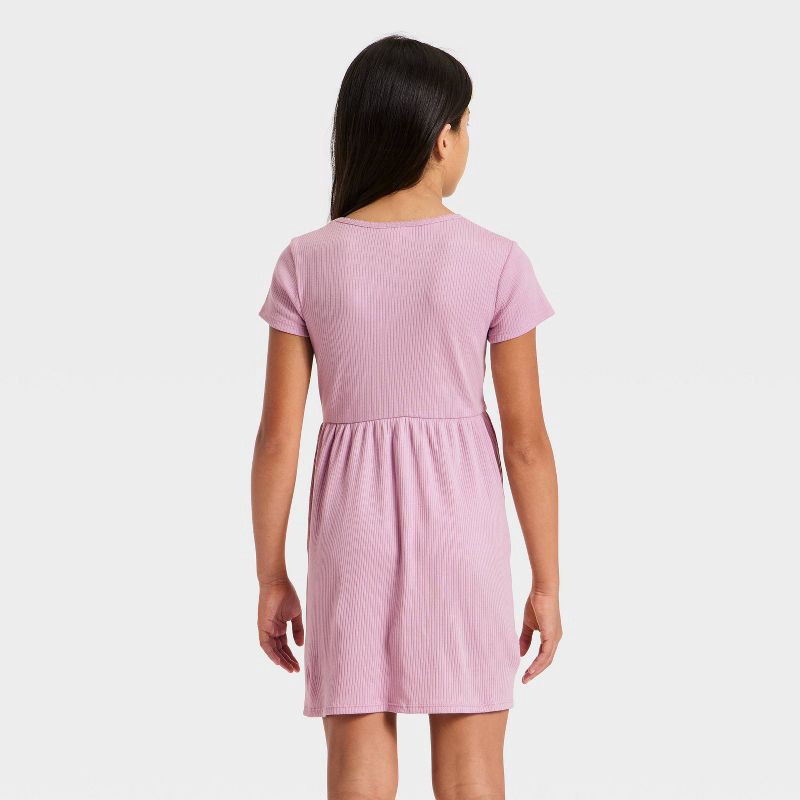 Girls' Short Sleeve Rib-Knit Dress - Cat & Jack™ Dusty Lilac Purple XS