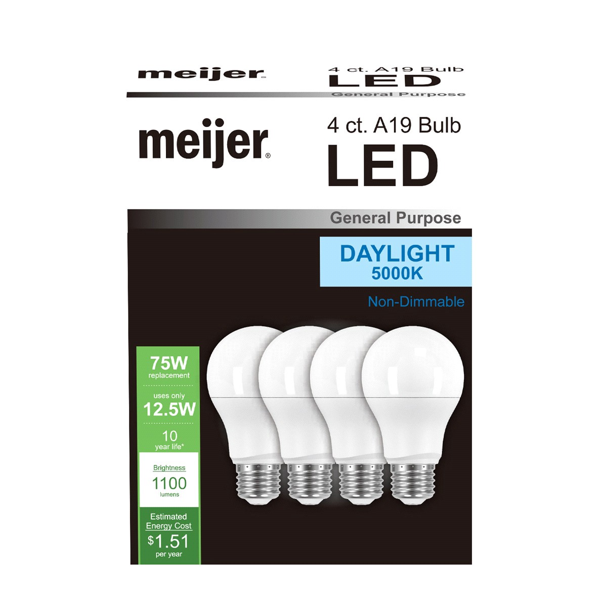12.5 watt A19 LED bulb provides 1100 lumens and replaces 75 watt incandescent bulb for over 83% energy savings. 5000K color of light is standard. Great for use in table lamps, floor lamps, wall sconceā¦