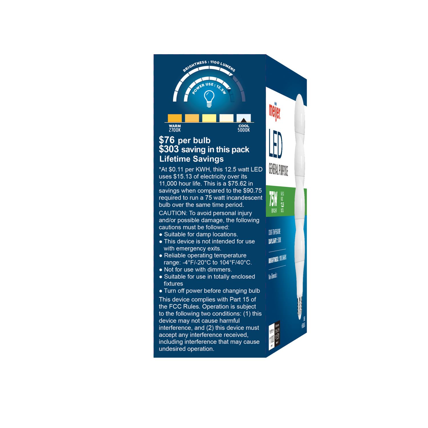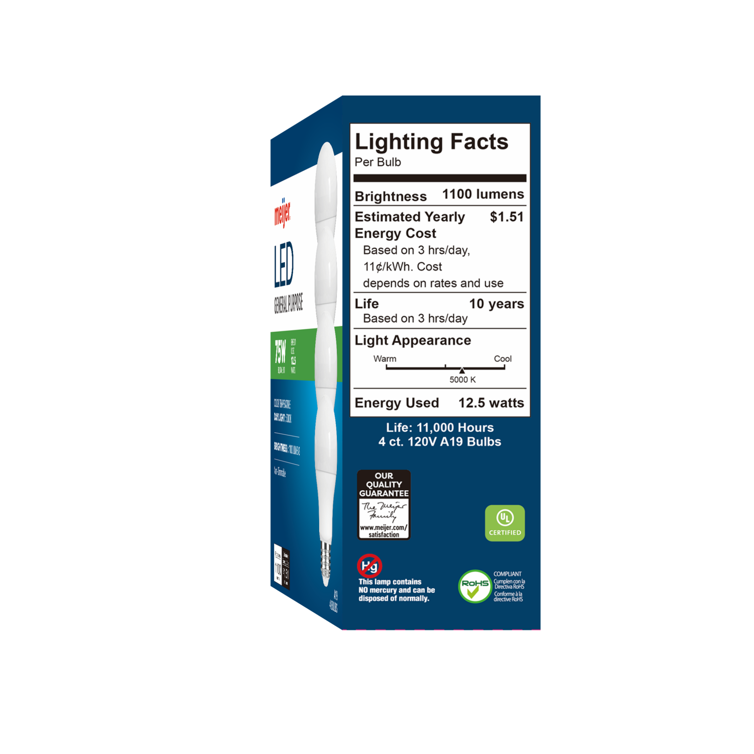 Meijer 75w Equivalent A19 Led Light Bulb, 4 Ct