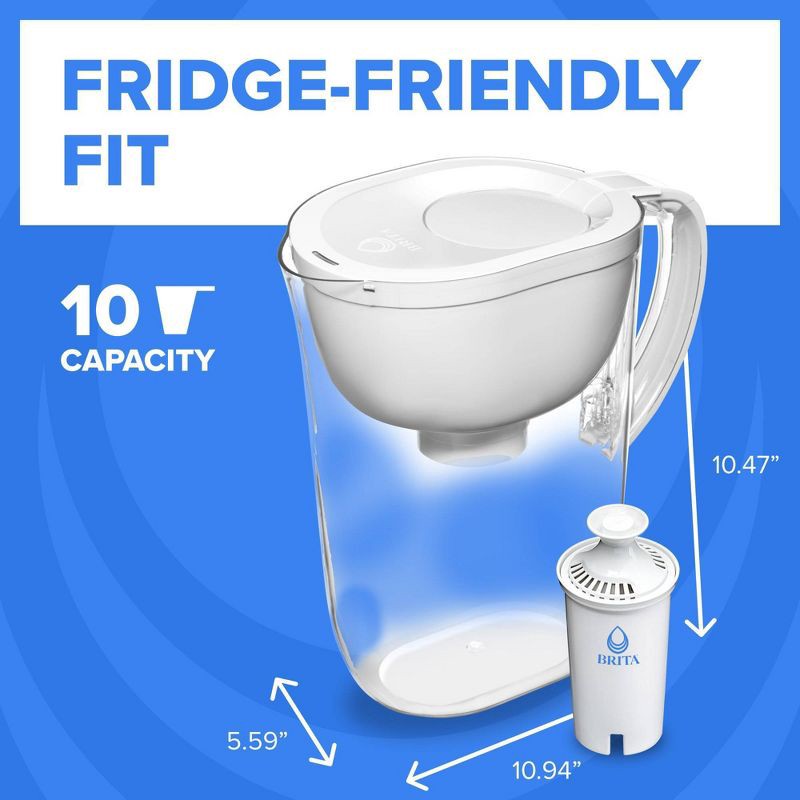 Brita Water Filter 10-Cup Tahoe Water Pitcher Dispenser - White: Easy-Fill Lid, Electronic Indicator
