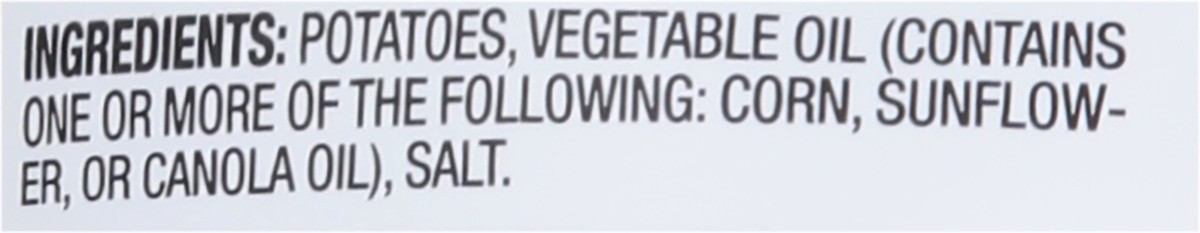 Potatoes, Vegetable Oil (Contains One or More of the Following: Corn, Sunflower, or Canola Oil), Salt.