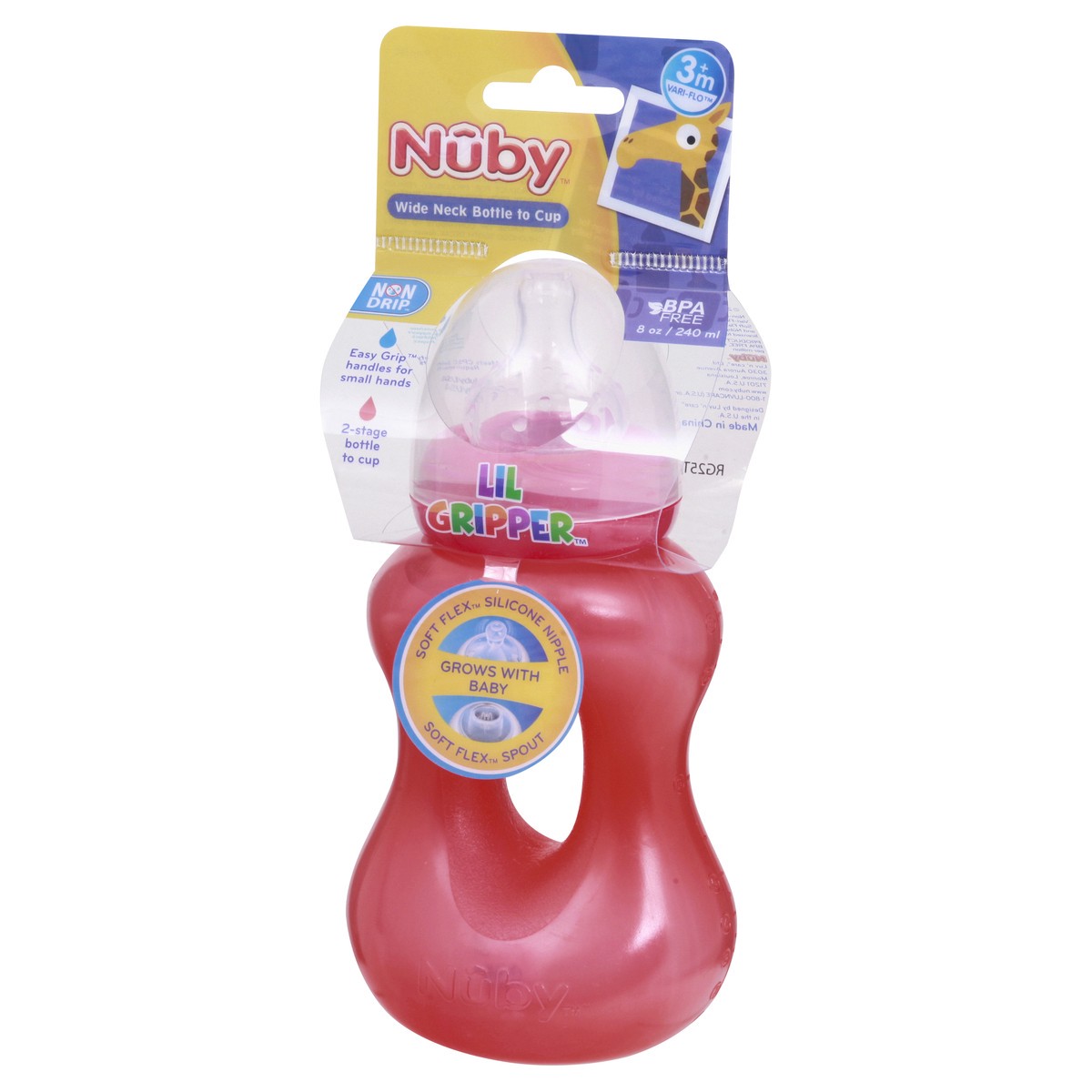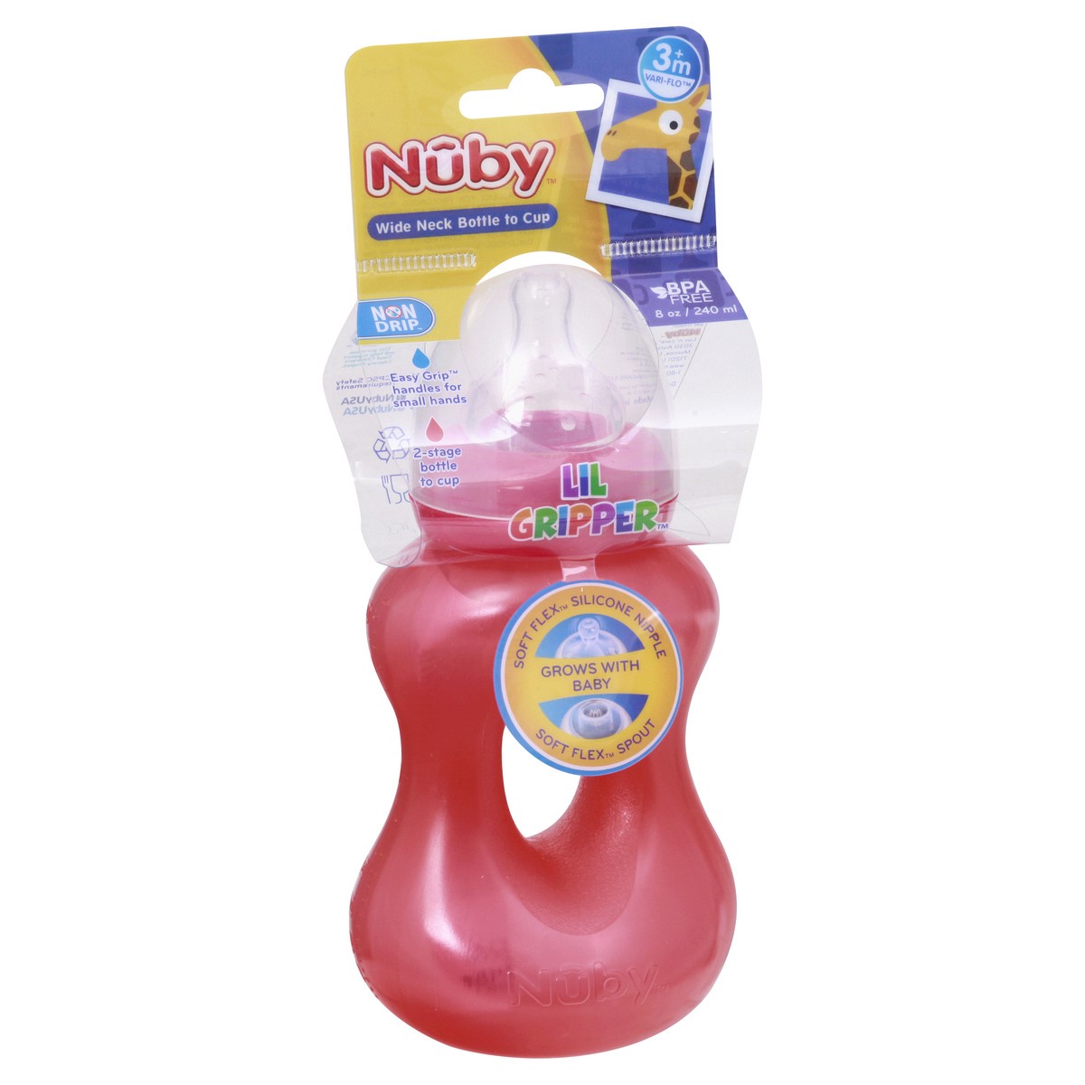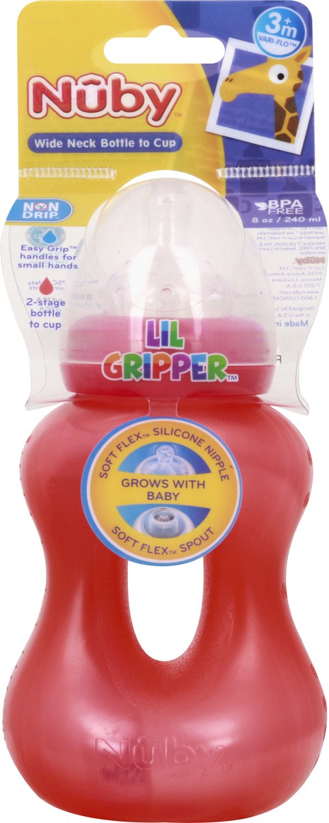 Nuby Lil Gripper Wide Neck Non Drip 3M+ Bottle to Cup 1 ea