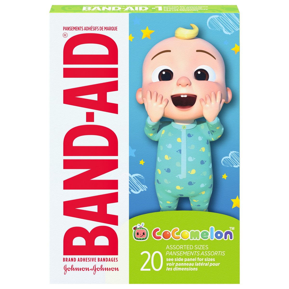 - Scrapes and blistersBandages help cover and protect minor cuts and scrapes from dirt and germs so they heal fastNon-stick pad protects sensitive wounds without sticking to them for more comfortable removalEach adhesive bandage from a doctor-recommended bandage brand features a CoComelon character designIdeal for home first aid kits