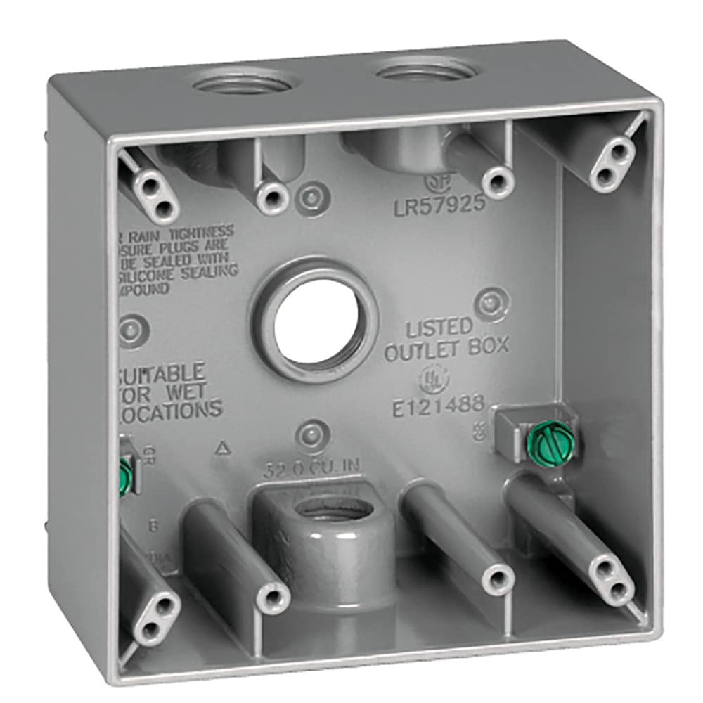 Weatherproof boxes house receptacles, switches and GFCI's. Features four 1/2-in knockouts. Powder coated for maximum corrosion resistance and suitable for wet locations. Die-cast metal construction pr…