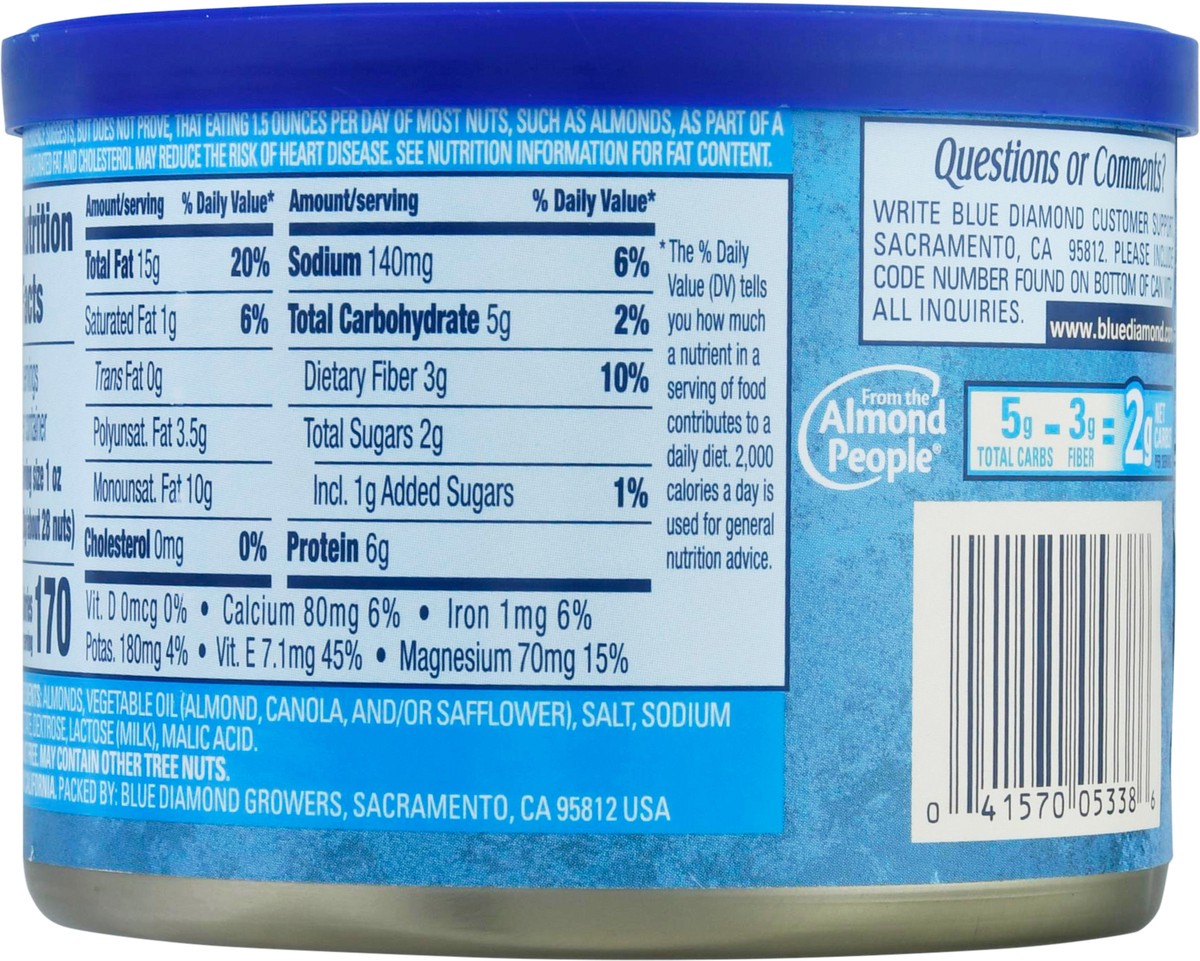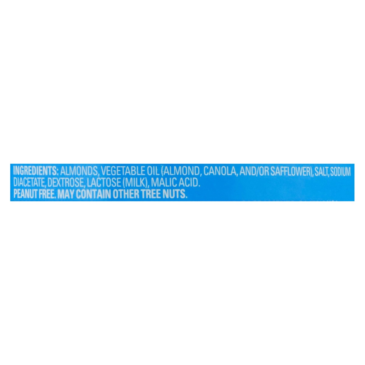 Almonds, Vegetable Oil (Almond, Canola, and/or Safflower), Salt, Sodium Diacetate, Dextrose, Lactose (Milk), Malic Acid.