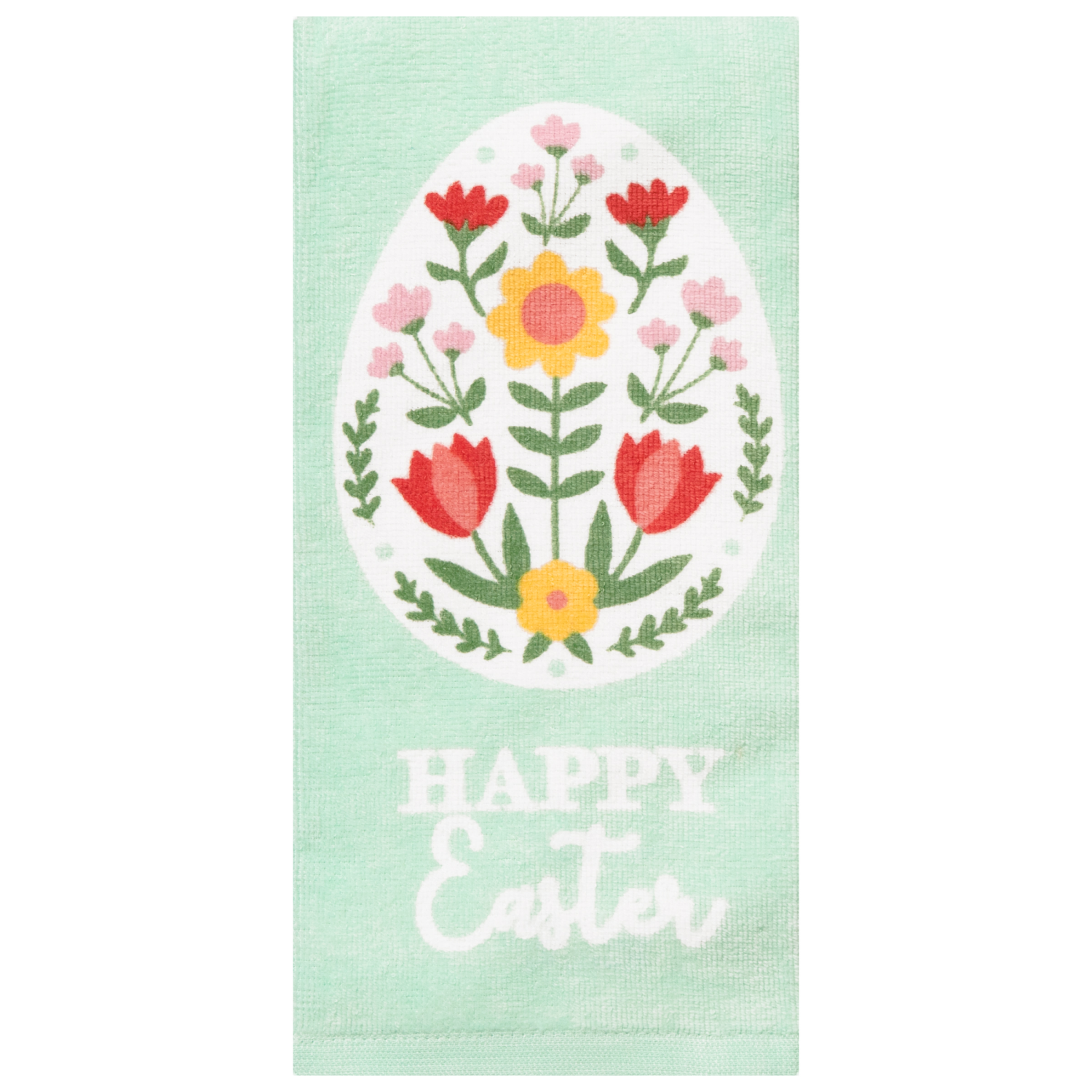 Meijer Corporate Seasonal Easter Big Floral Egg Green Fiber Reactive Kitchen Towel, 16 in x 25 in