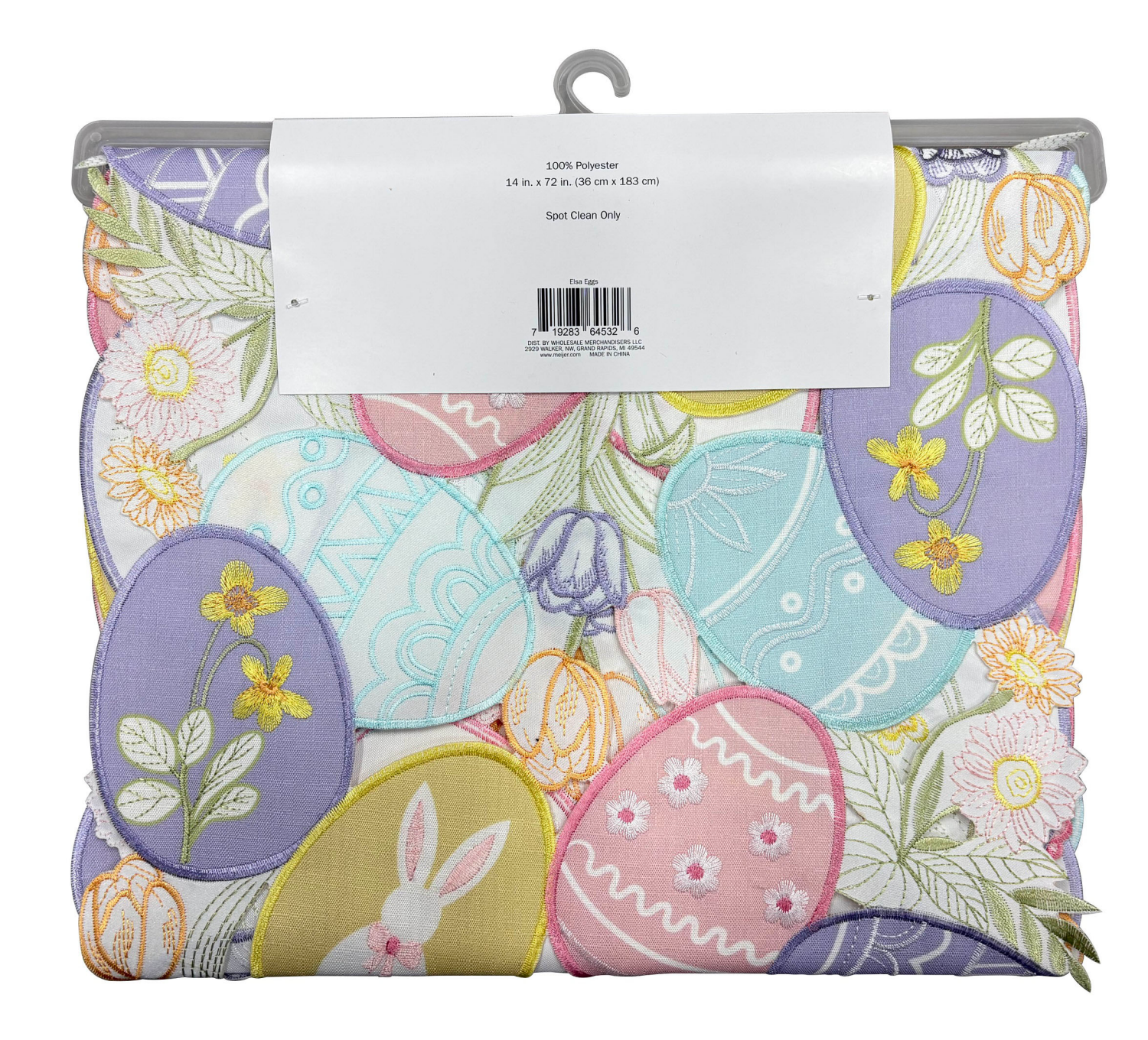Meijer Corporate Seasonal Mcs Easter Elsa Eggs Cutwork & Embroidery Runner, 14 In X 72 In