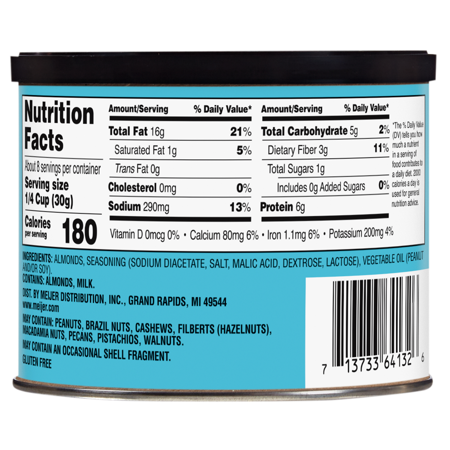Experience a bolt of satisfying tanginess with every crunch of Meijer Salt & Vinegar Roasted Whole Almonds. Bursting with exciting, zippy flavors, you can enjoy the classic crispiness and nutty flavor…